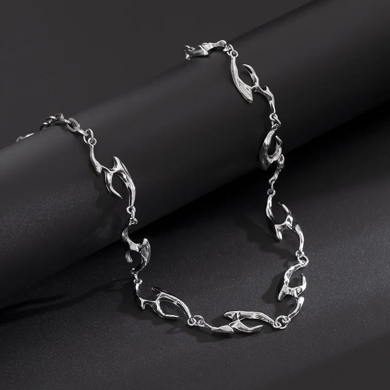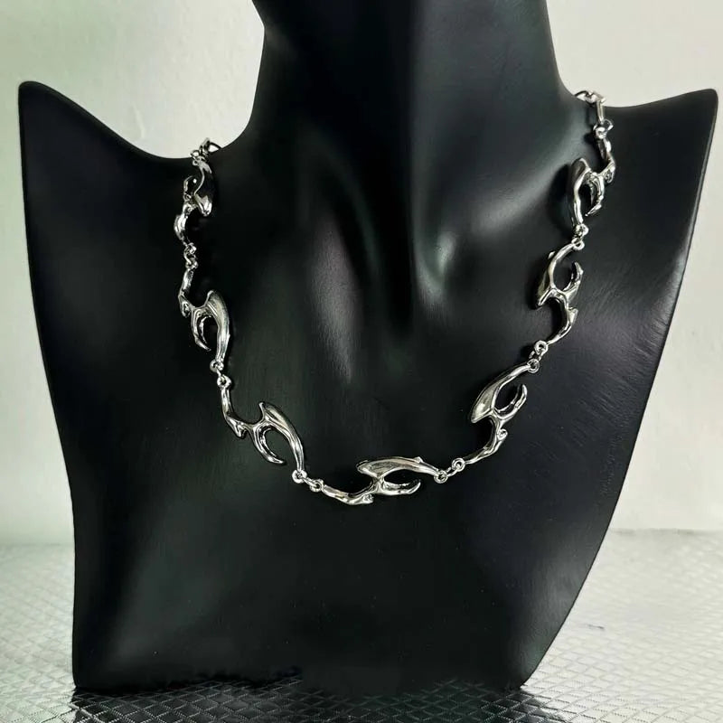 2025 New Punk Silver Thorny Choker Necklace for Hip Hop and Rock Style