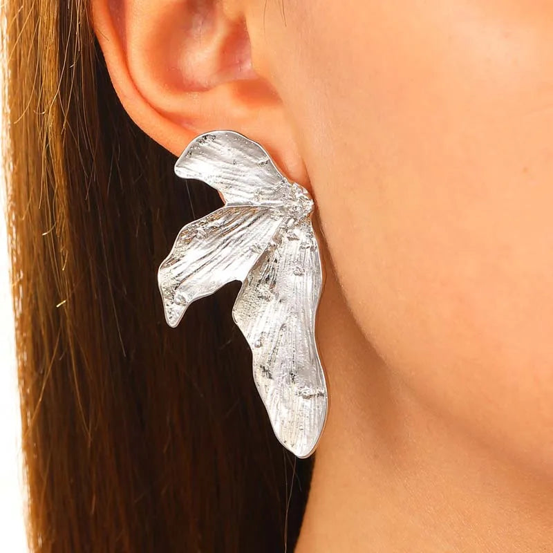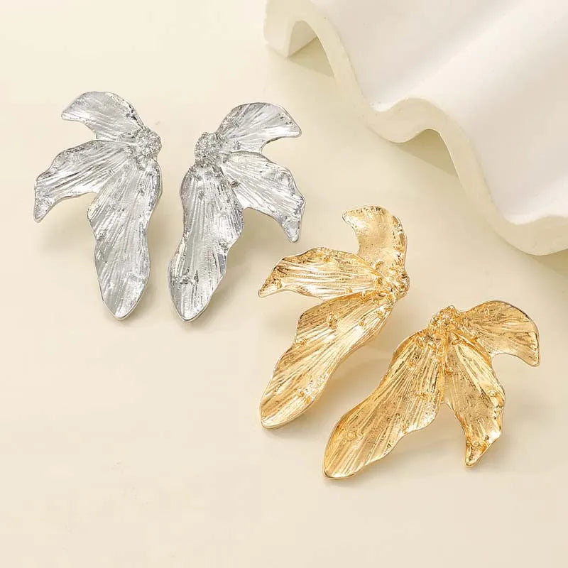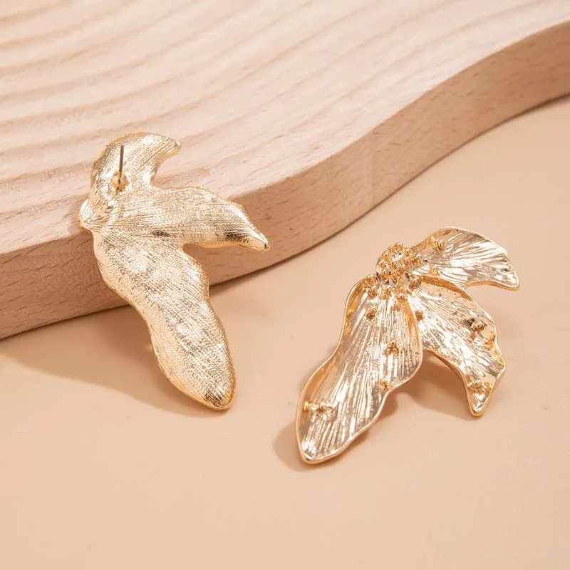 Exaggerated Personality Metal Geometric Leaf Stud Earrings for Women - Irregular Wrinkled Texture Party Jewelry Gift