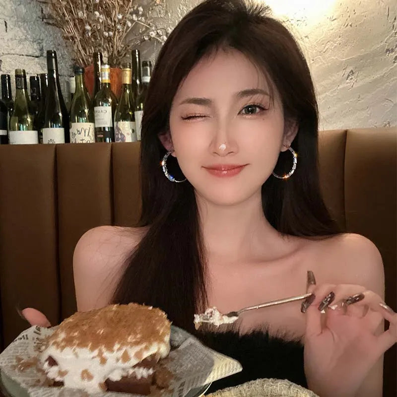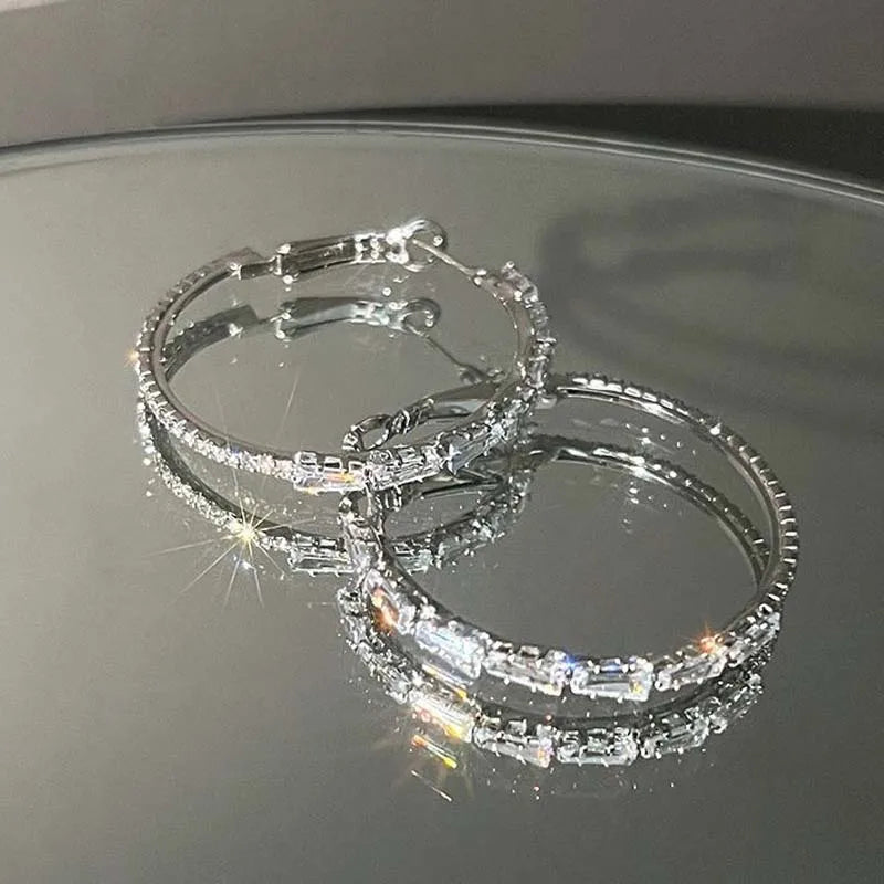 Luxury Shiny Zircon Circle Hoop Earrings for Women - 2025 New Fashion Big Round Wedding Jewelry