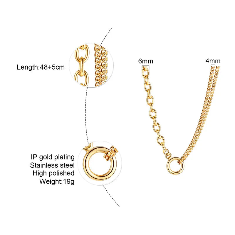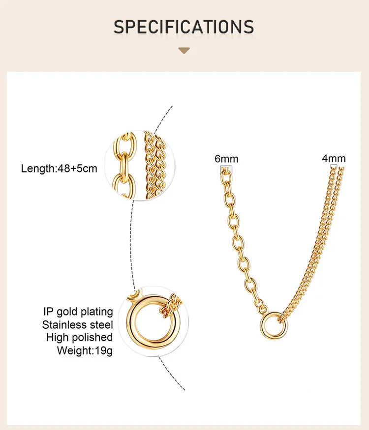 Every woman deserves to feel empowered and express her unique style, and the Oval Cable Link with Double Cuban Chain Necklace is the perfect accessory to achieve just that. Imagine stepping into a room, the soft glimmer of stainless steel catching the light as you move, instantly drawing attention and compliments. This statement piece not only enhances your outfit but also speaks volumes about your fashion sense.