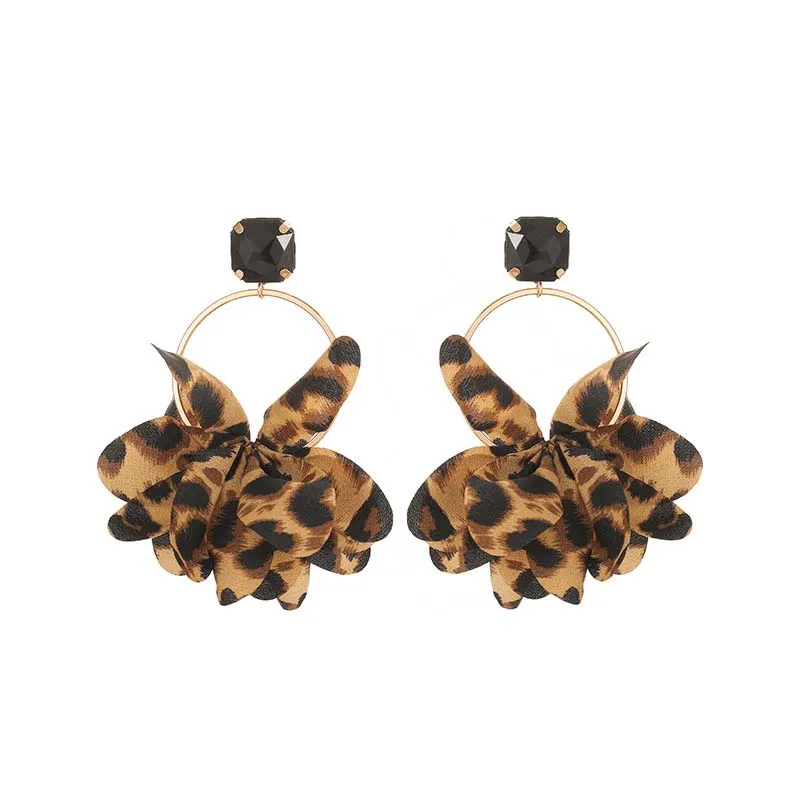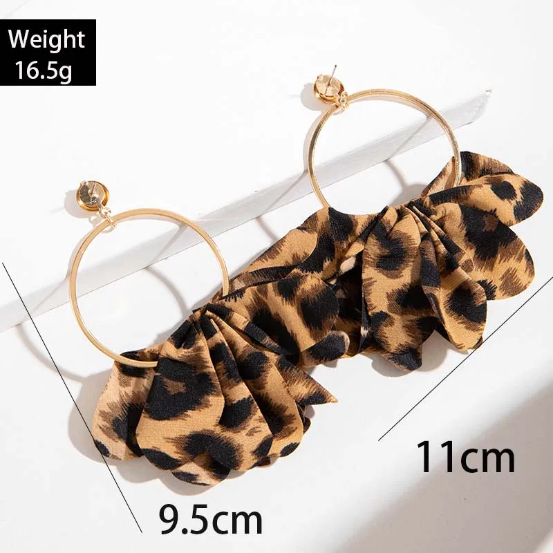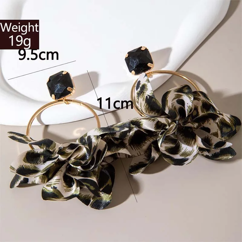 Retro Leopard Print Fabric Drop Earrings for Women - Exaggerated Black Crystal Geometric Circle Petal Pendant Jewelry Gift