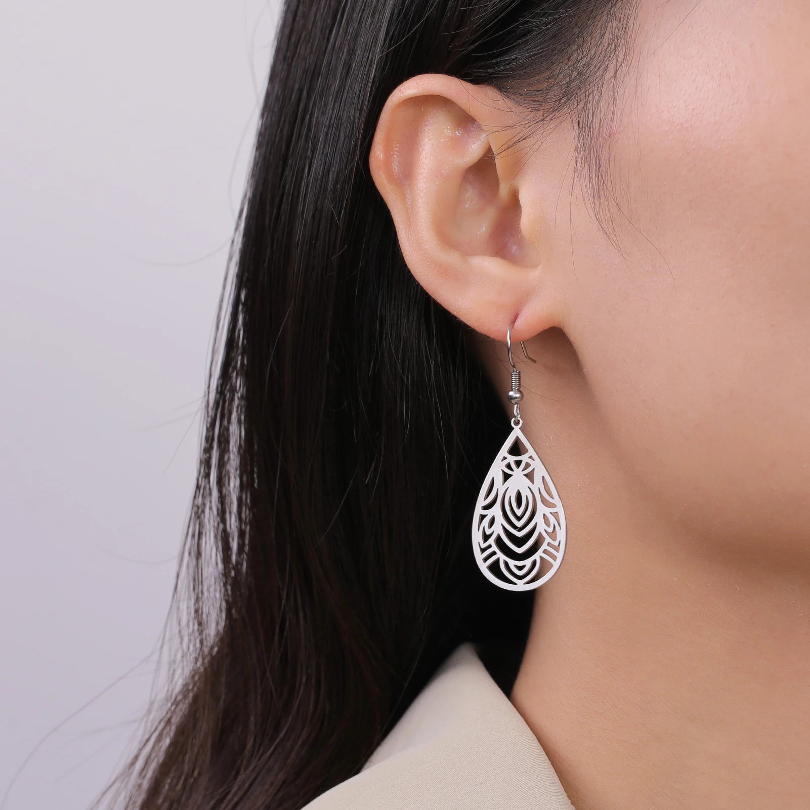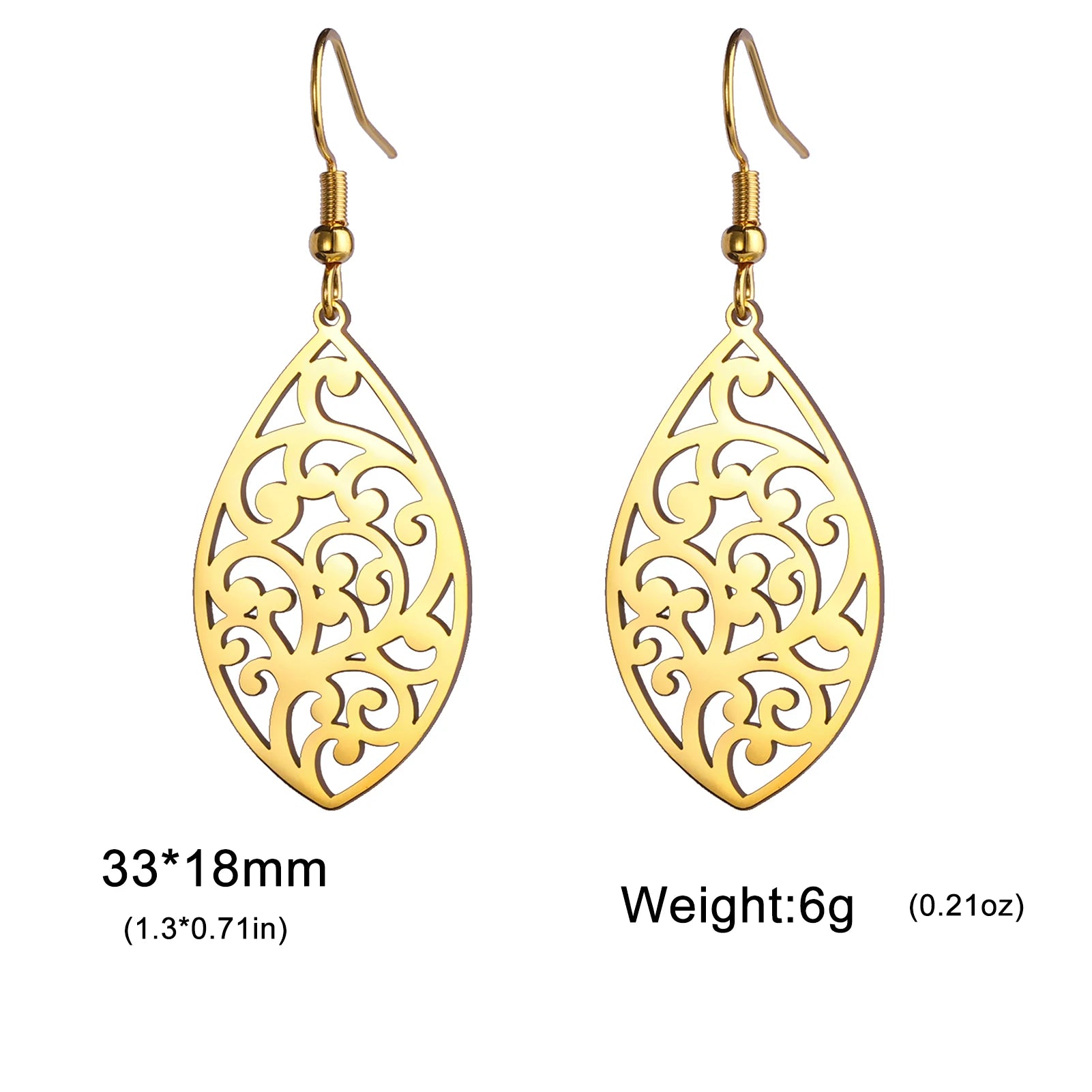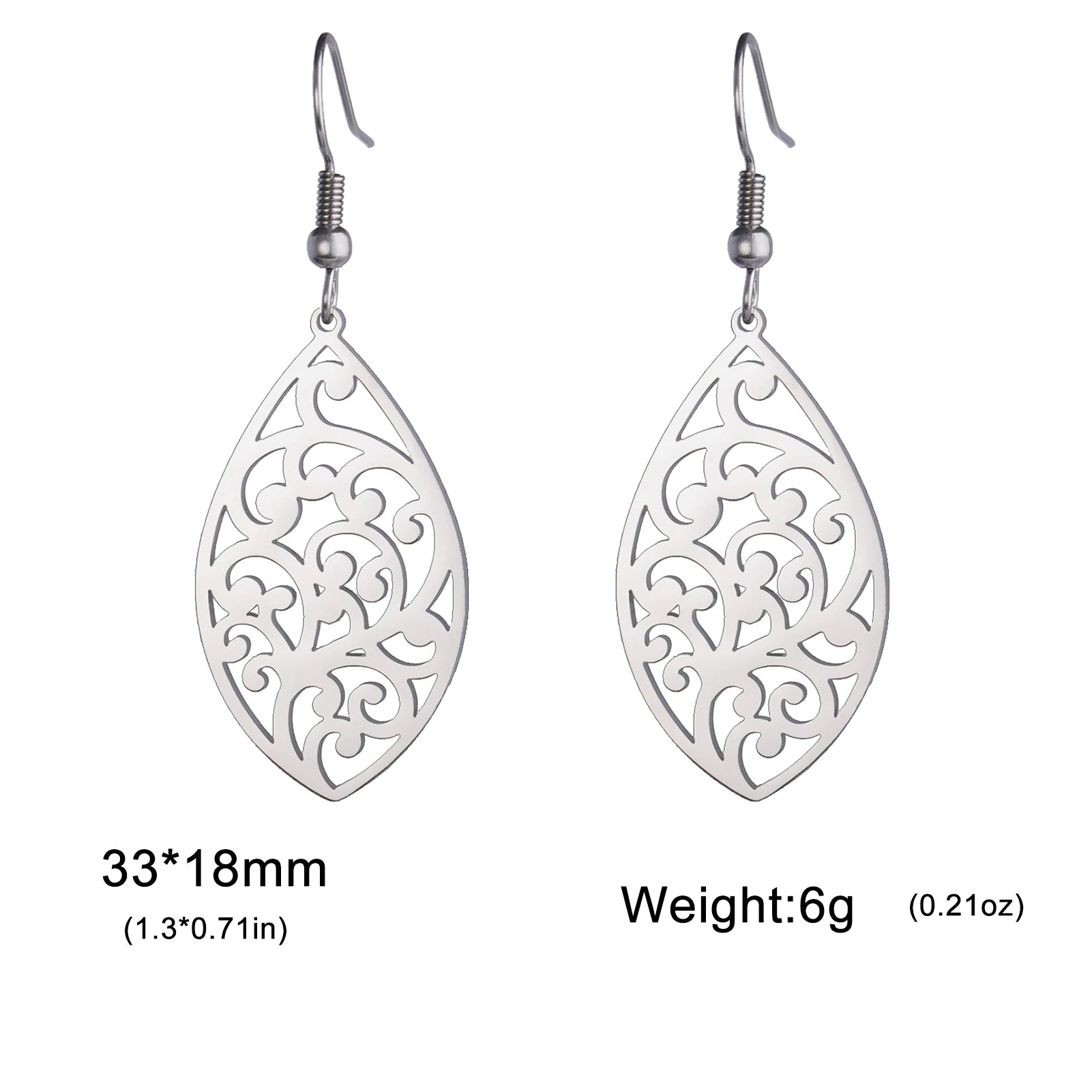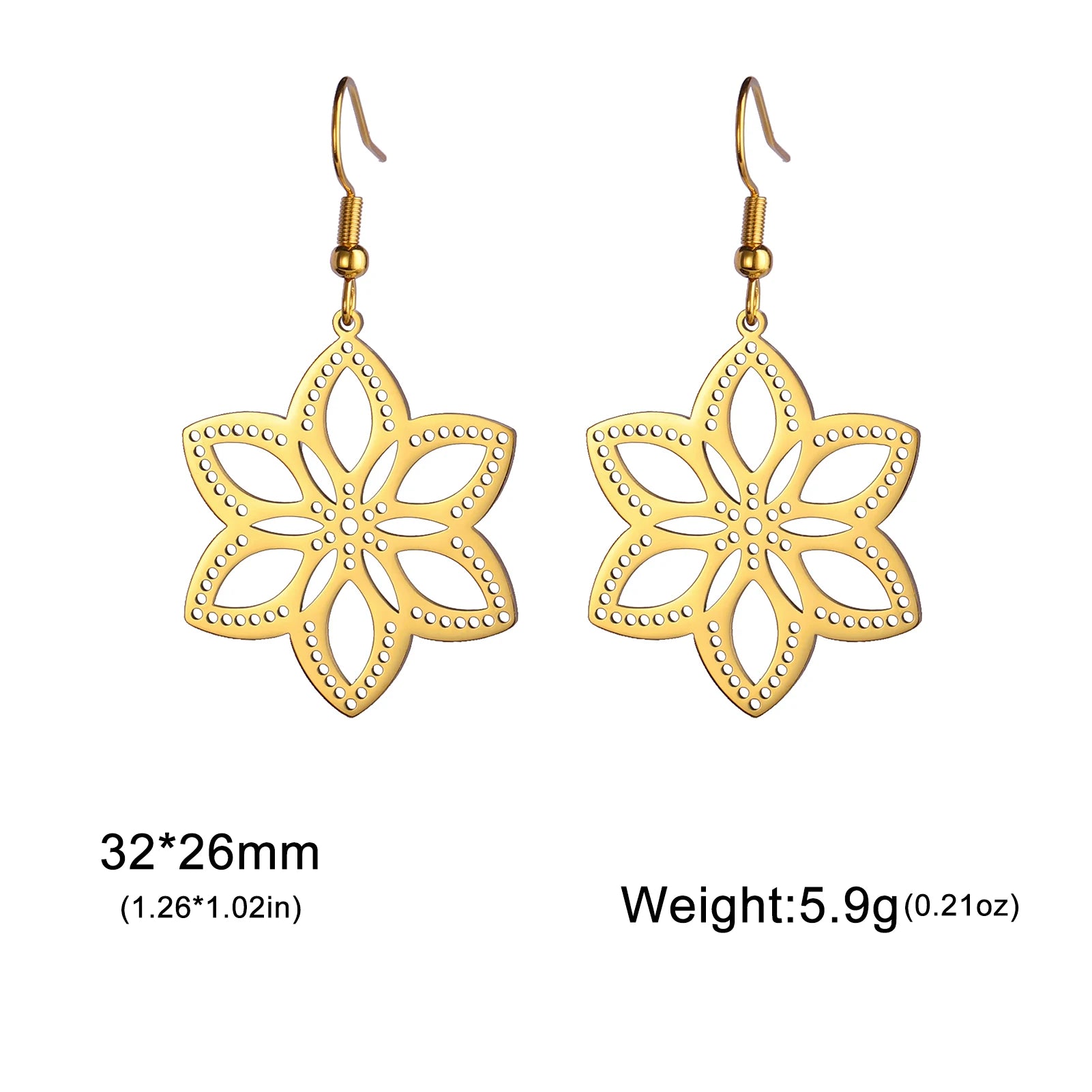 Skyrim Bohemian Flower Filigree Drop Earrings - Stainless Steel Waterproof Dangle Earrings for Women