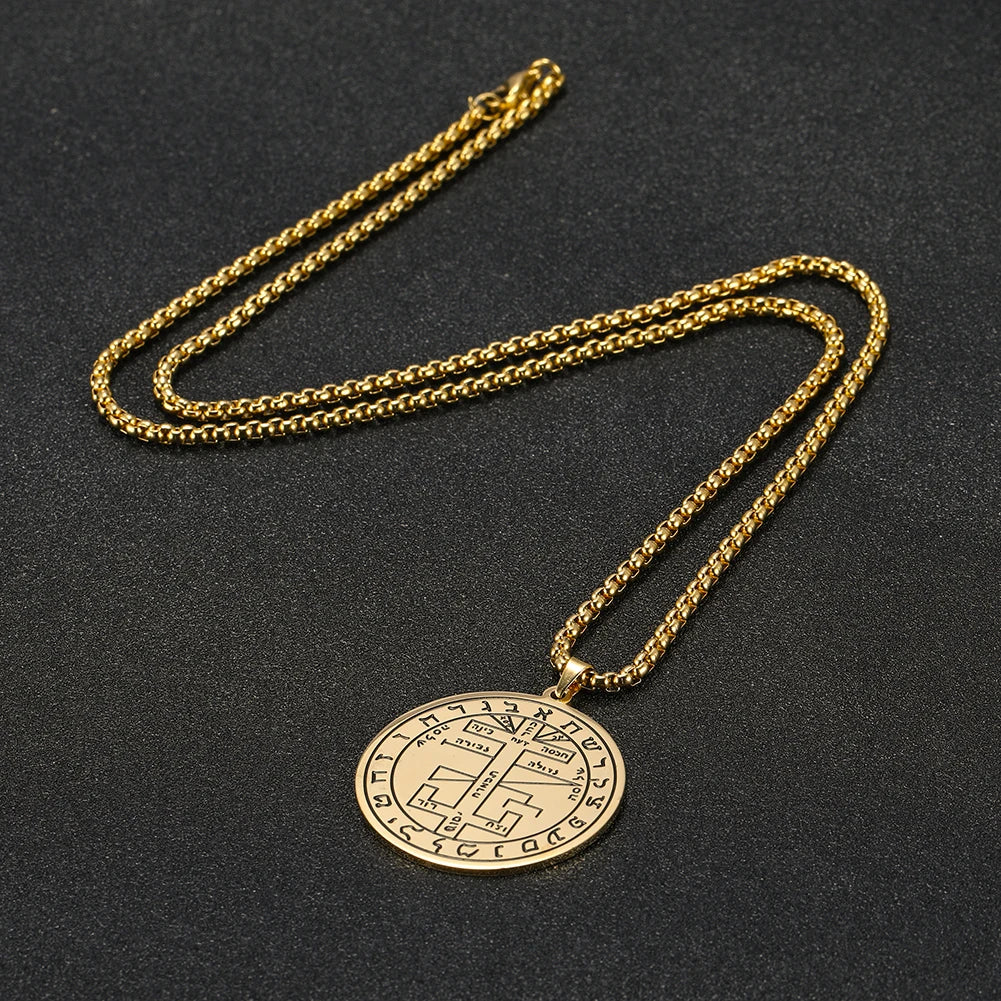 Skyrim Brave Warrior Talisman Pendant Necklace - Solomon Amulet in Stainless Steel with Golden Chain