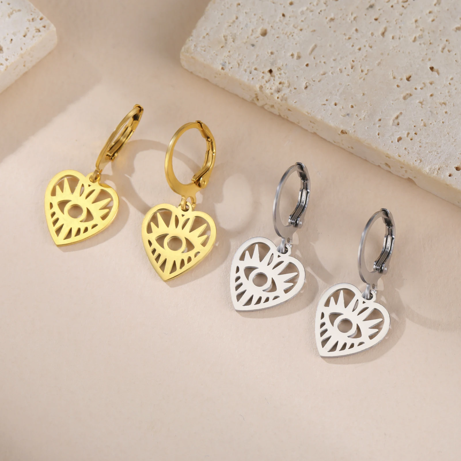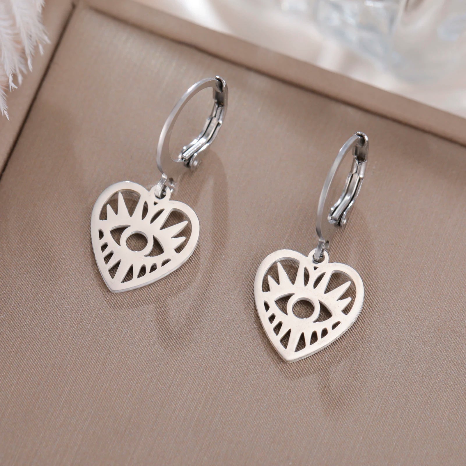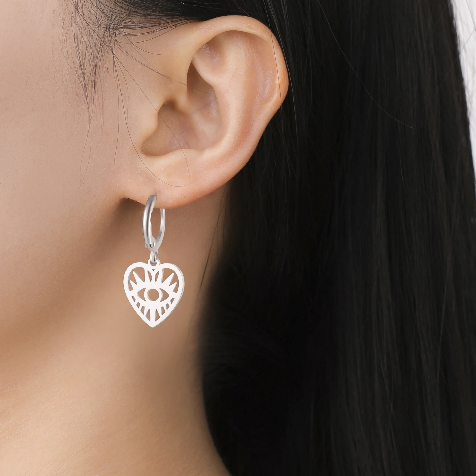 Skyrim Fashion Women Girls Stainless Steel Earrings - Heart Cross Flower Turtle Sun Pendant Hoop Earrings Jewelry Gift Wholesale