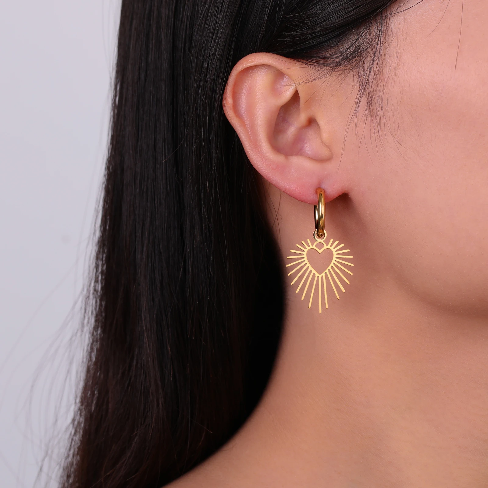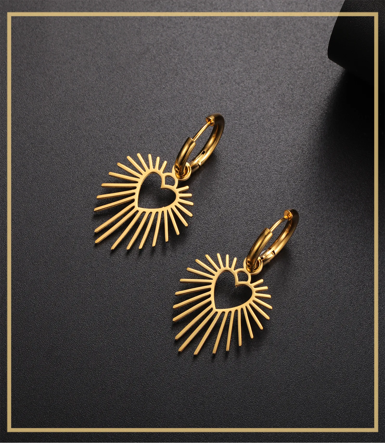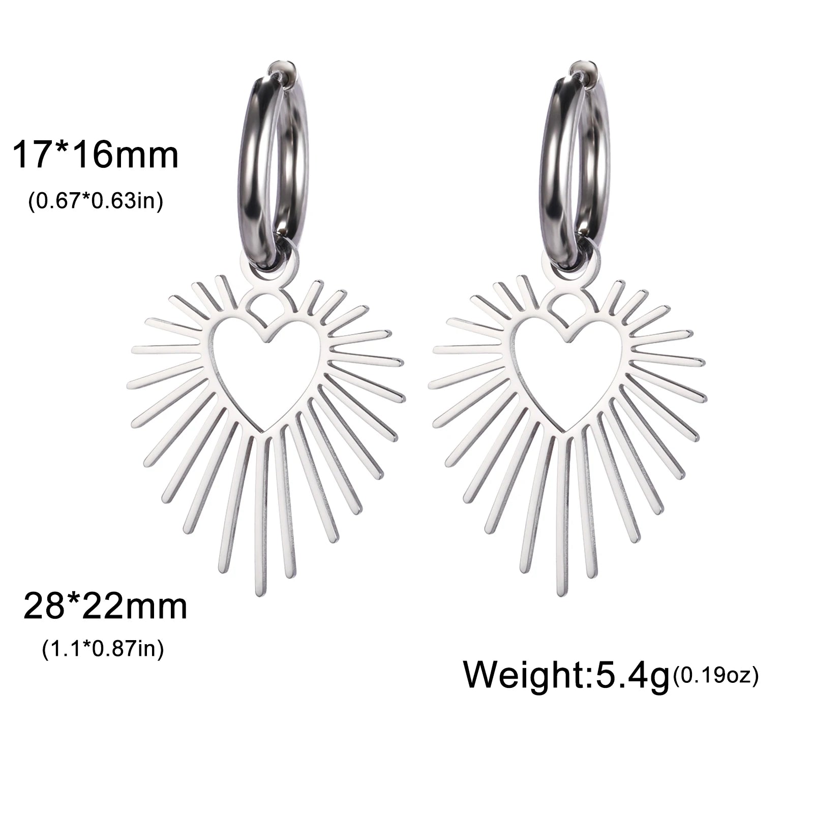 Skyrim Geometric Heart Sun Pendant Drop Earrings - Stainless Steel Hoop Earrings for Women
