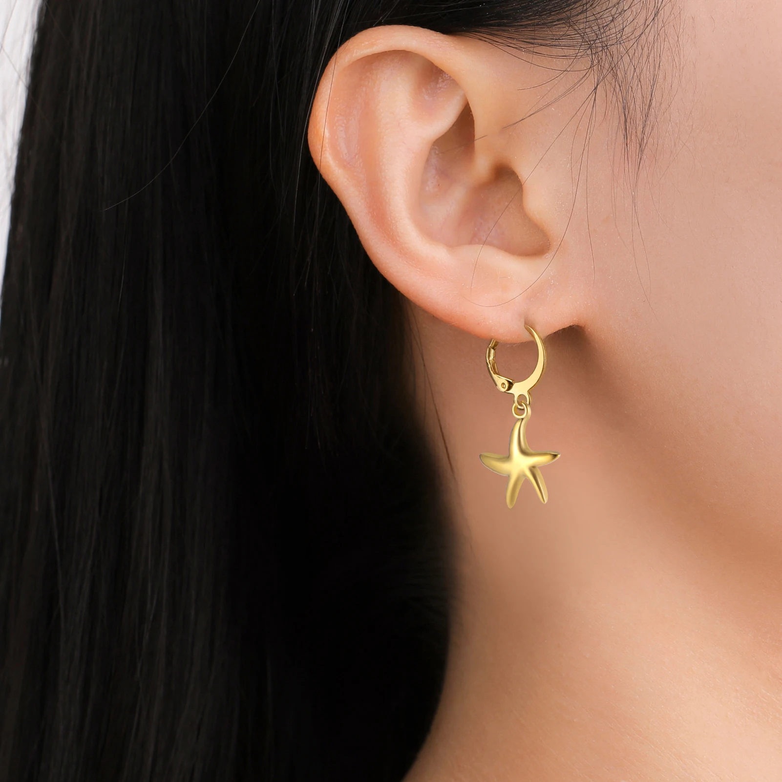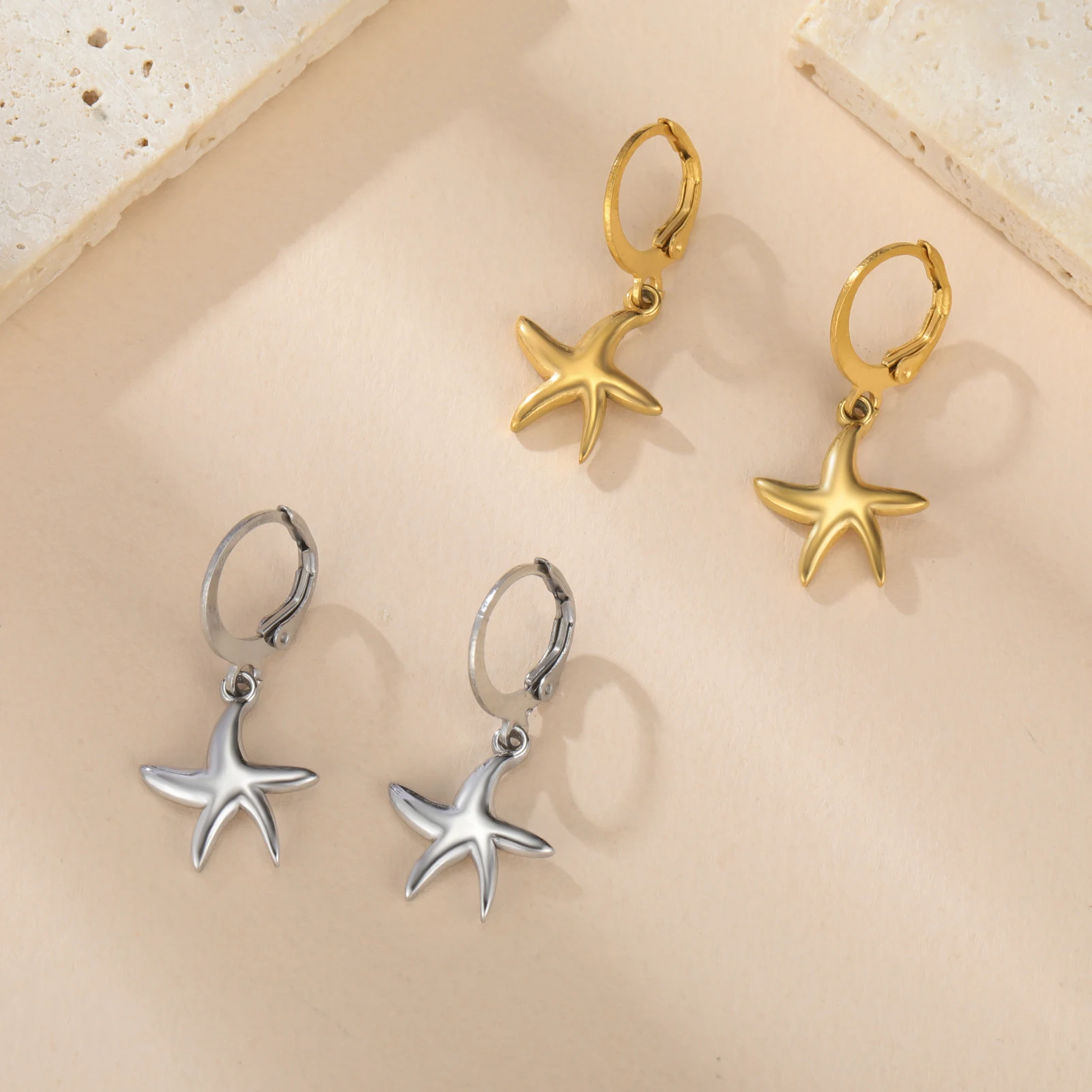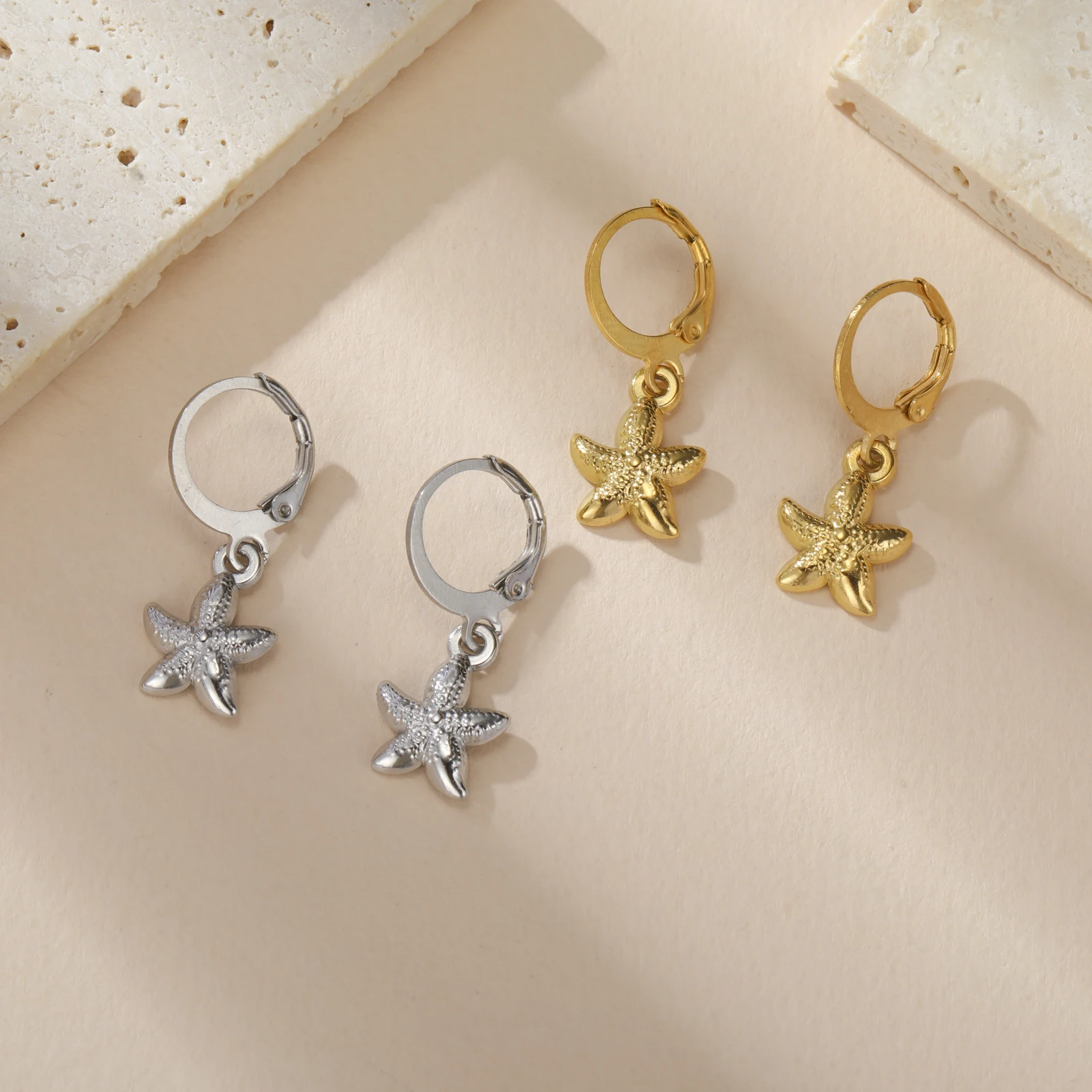 Crafted from premium stainless steel and plated with 18k gold, these earrings combine durability with a luxurious look. Imagine wearing them as you stroll along the shore, the gentle breeze dancing through your hair, while the sun sparkles off the intricate details of your earrings. The heart, starfish, and sun motifs reflect your love for life, travel, and the beauty of nature.