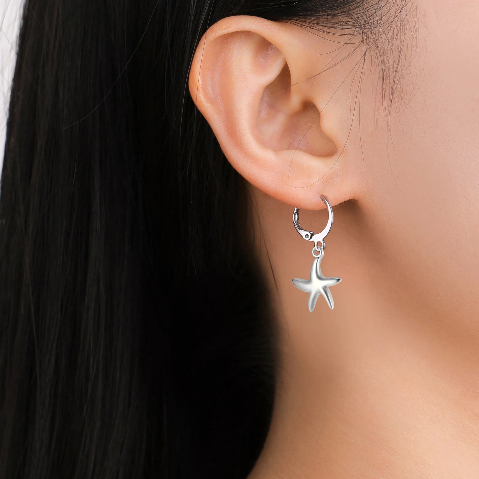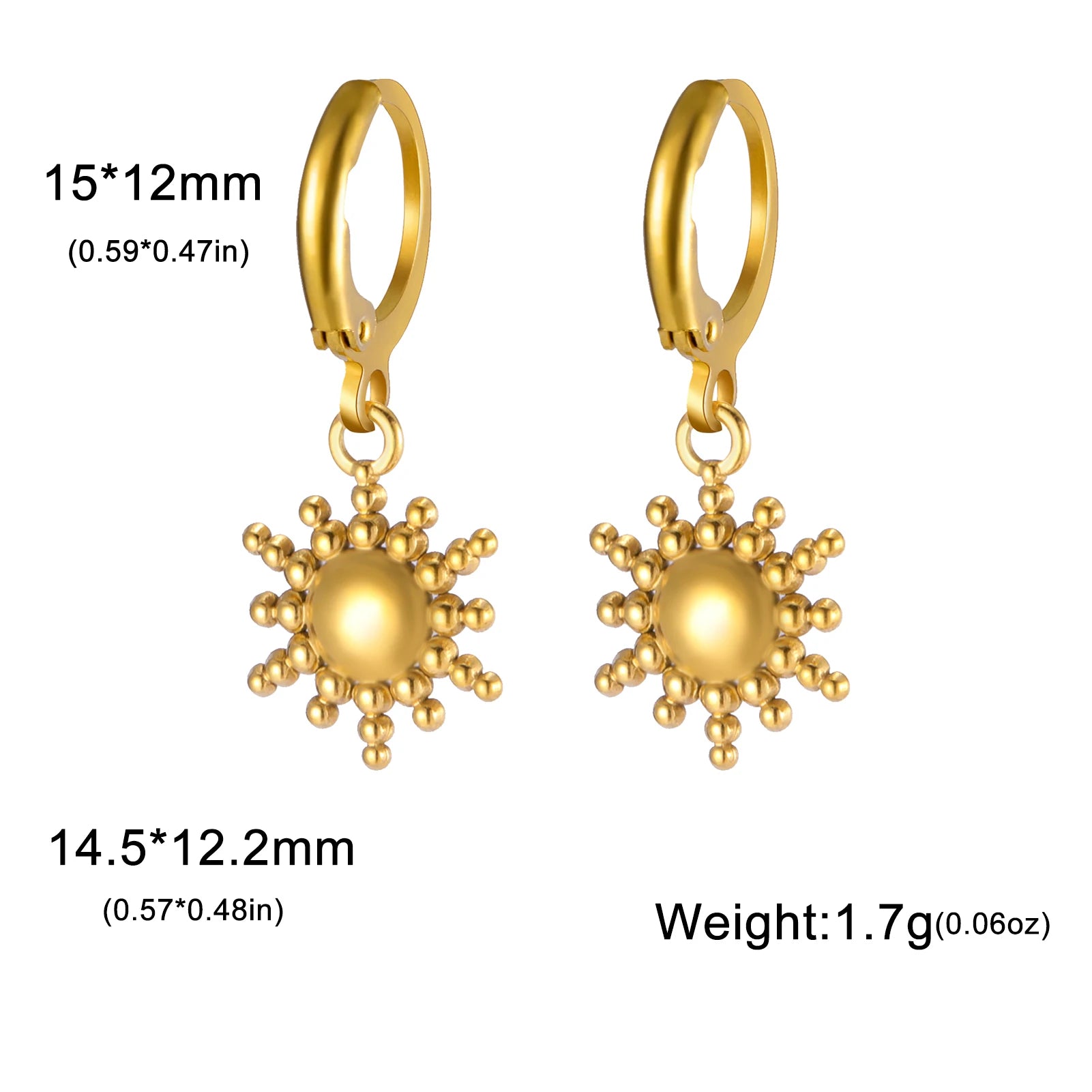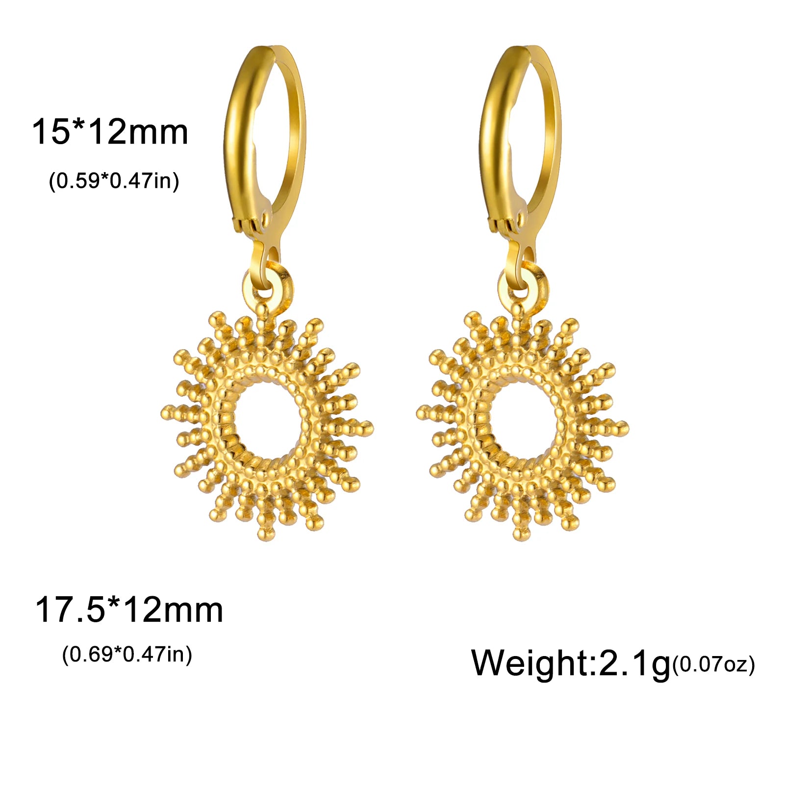 Skyrim Gold Color Stainless Steel Women's Heart Starfish Sun Pendant Hoop Earrings - Fashion Jewelry Gift