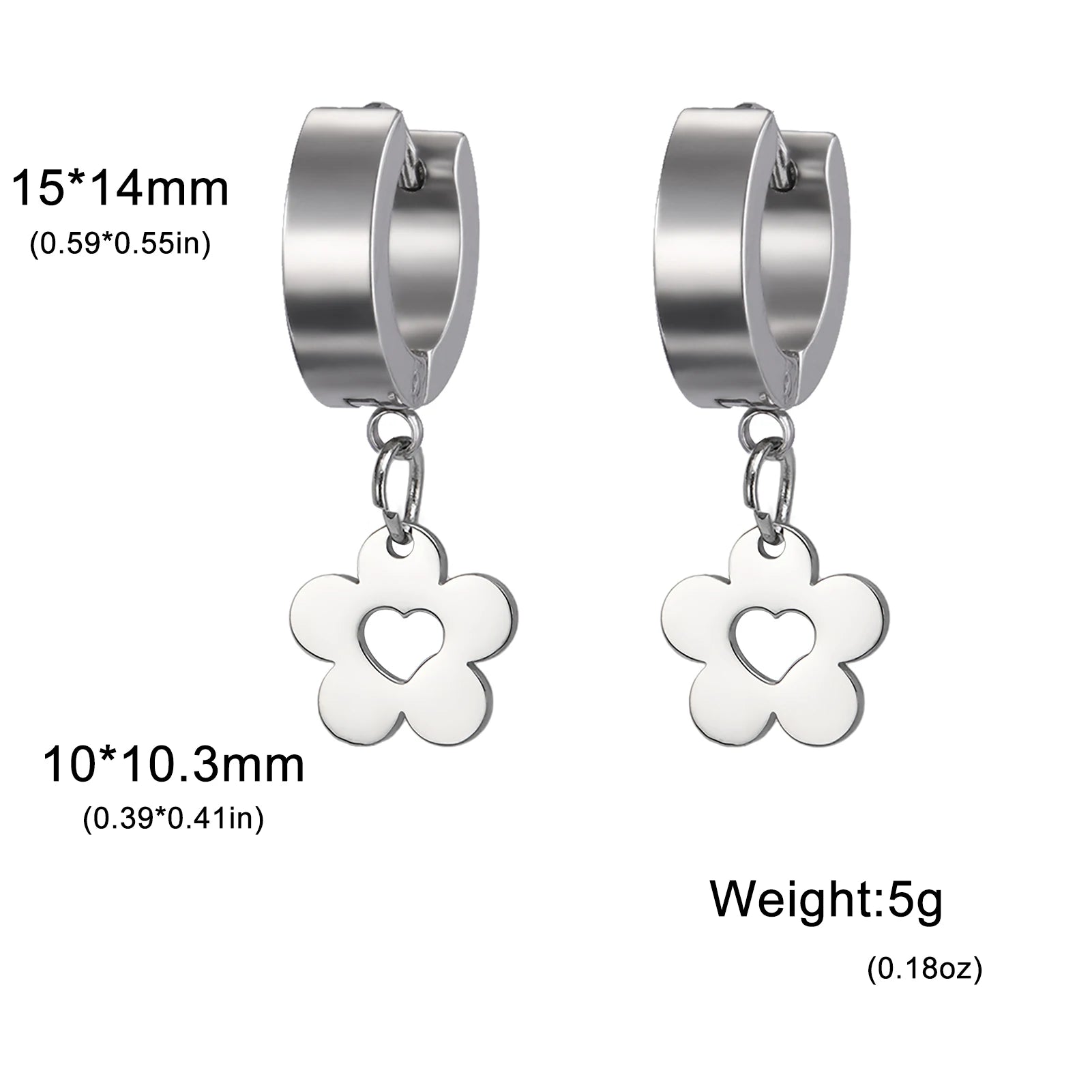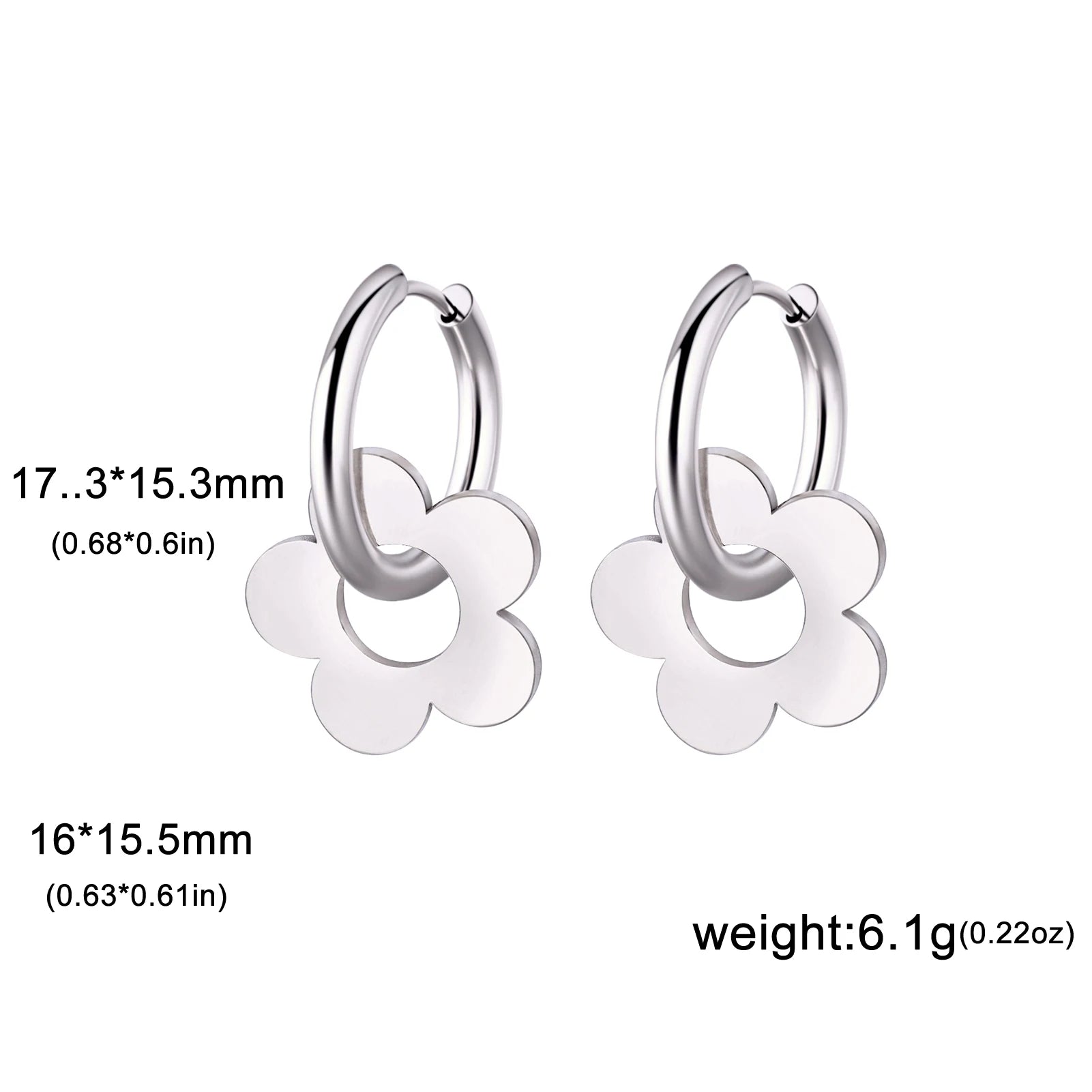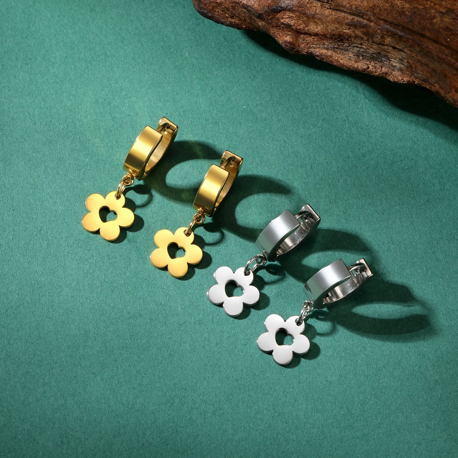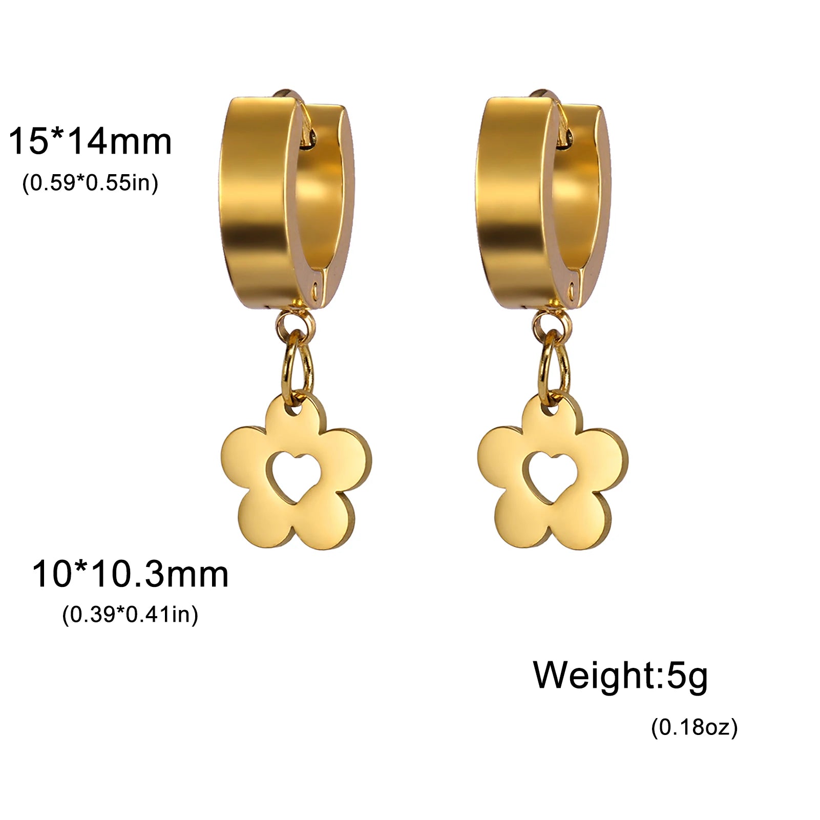 Skyrim Kpop Women Flower Drop Earrings - Gold Color Stainless Steel Hoop Earrings