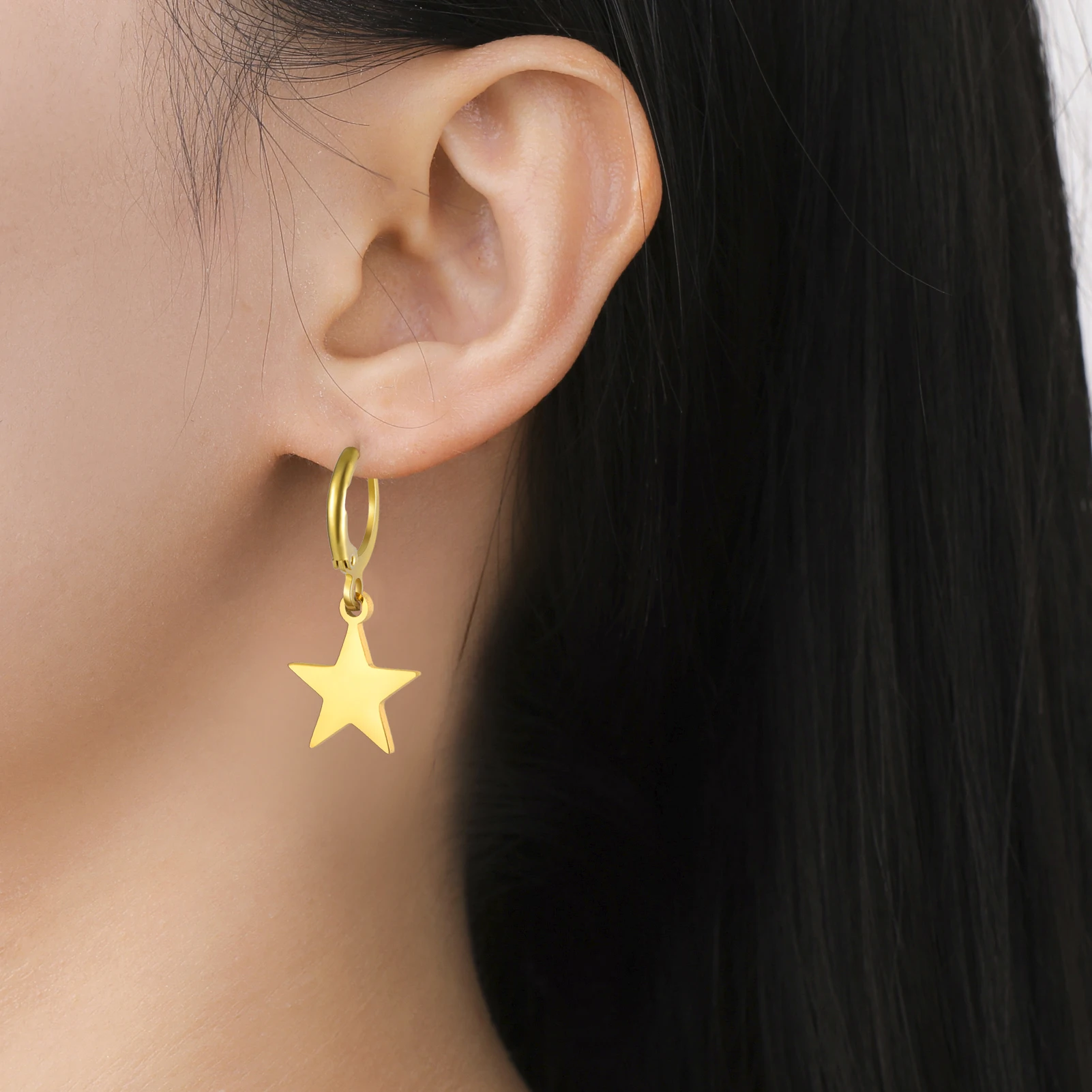 Skyrim Moon Star Drop Earrings – Gold Stainless Steel Hoop Earrings for Women and Girls