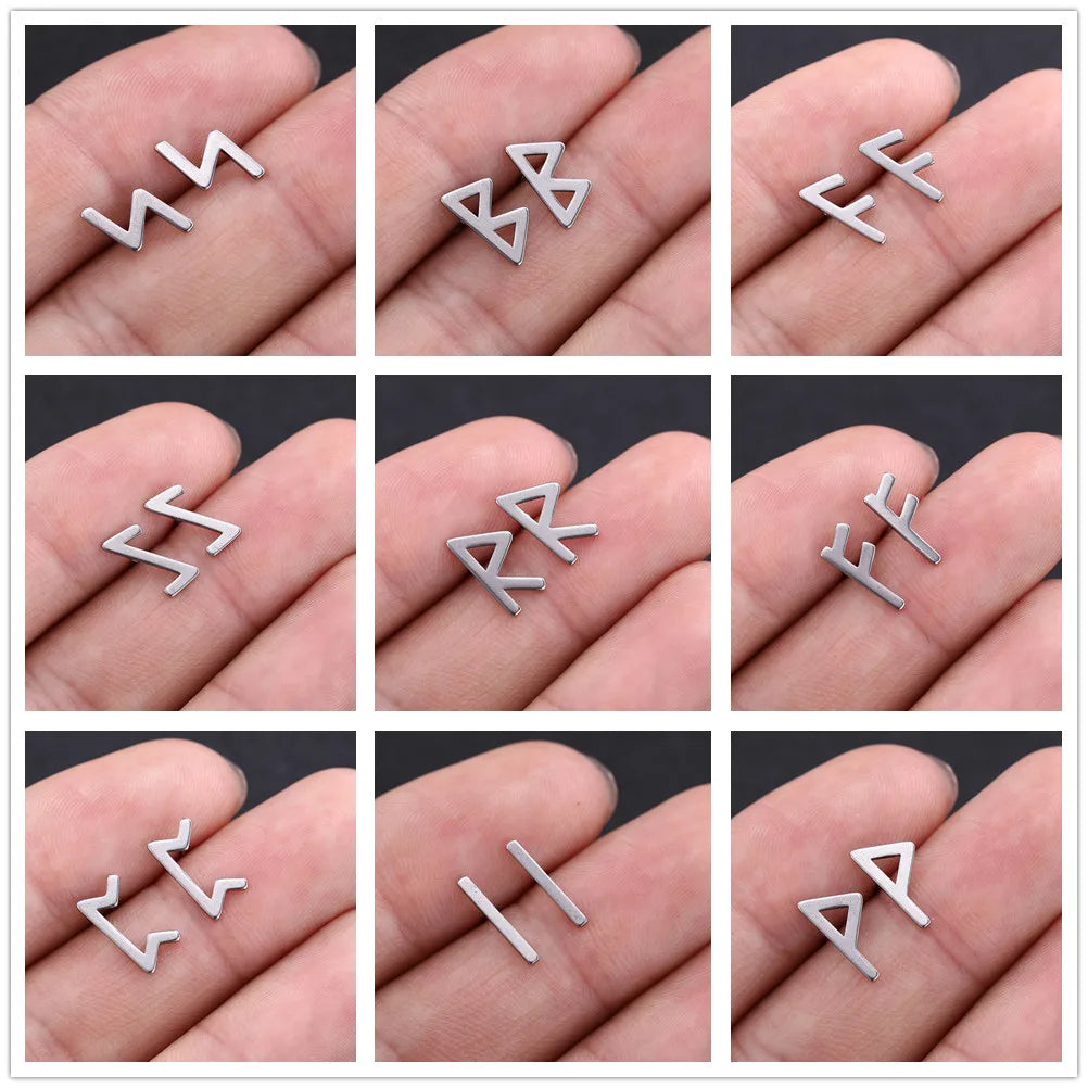 Skyrim Nordic Runes Letter Earring Amulet - Stainless Steel Stud Jewelry for Women and Girls