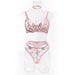 Embroidery Lingerie Set for Women - Floral Boho 3-Piece Bra and Panty Underwear Set