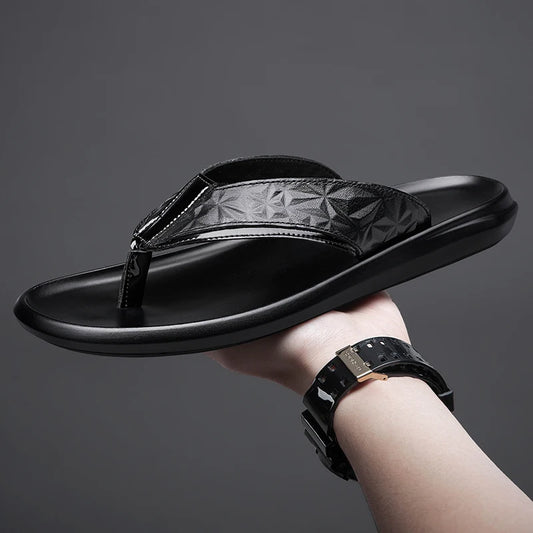 DEKABR Zomerpantoffels voor heren - Stijlvolle leren slippers - Zwart