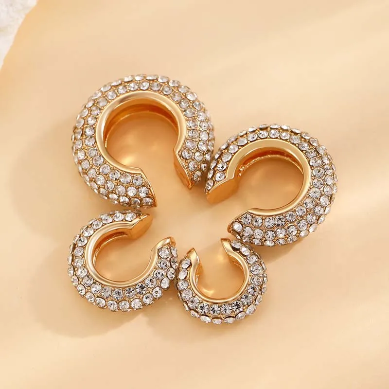 Crafted with high-quality materials, each earring features a geometric design adorned with luxurious crystals that sparkle and shine, drawing attention wherever you go. The clip-on style ensures a secure fit without the need for piercings, making them a perfect choice for anyone desiring a trendy accessory that’s both fashionable and comfortable.