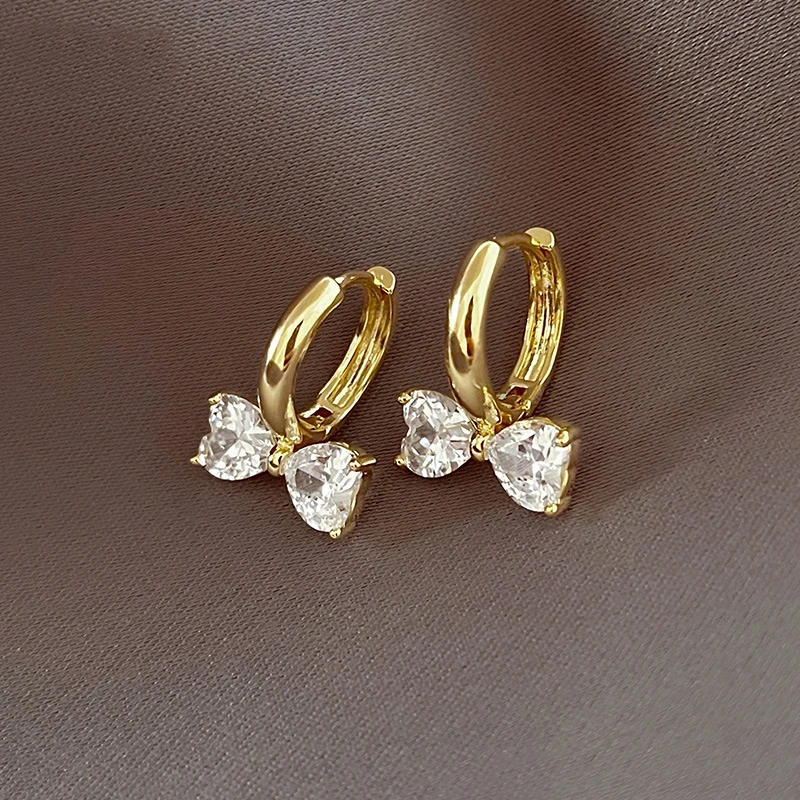 Crafted from high-quality materials, these earrings feature shimmering zircon stones set in a delicate bow design, embodying both sweetness and elegance. The warm gold color complements various skin tones, making them versatile enough for both casual outings and formal events. Whether you’re dressing up for a wedding or adding a touch of glamour to your everyday wear, these earrings are the perfect choice.