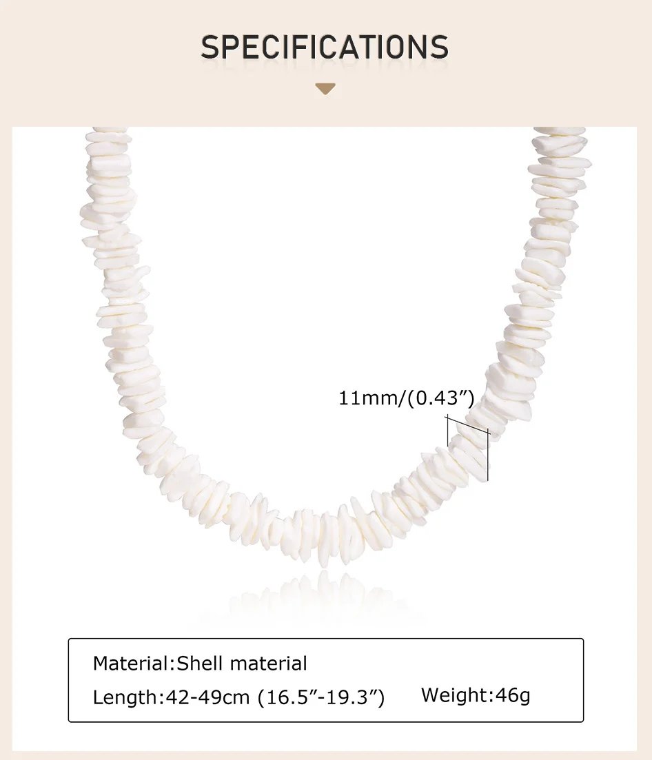 Imagine a sunny day on the beach, the sound of waves gently crashing, and the warm sun kissing your skin. Enhance this idyllic experience with our Bohemian Puka Shell Chain Necklace, a stunning accessory that captures the spirit of the ocean. Perfect for beach outings, casual gatherings, or simply adding a touch of seaside charm to your everyday look, this necklace is a must-have in every woman's jewelry collection.