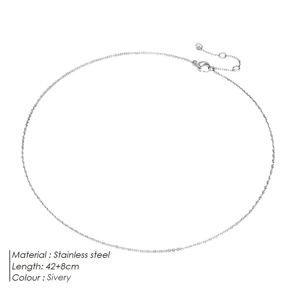 Crafted from high-quality stainless steel and plated in a luxurious silver color, this necklace combines durability with a refined aesthetic. Its fine chain design is not only lightweight but also offers a subtle shimmer that catches the light beautifully. The minimalist yet sophisticated look makes it suitable for both daily wear and special occasions, allowing you to express your unique style.