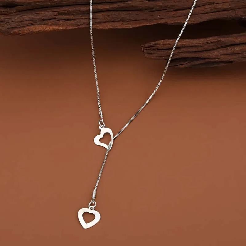 Fashion Double Love Heart Necklaces for Women - Simple Silver Color Long Tassel Jewelry Gift