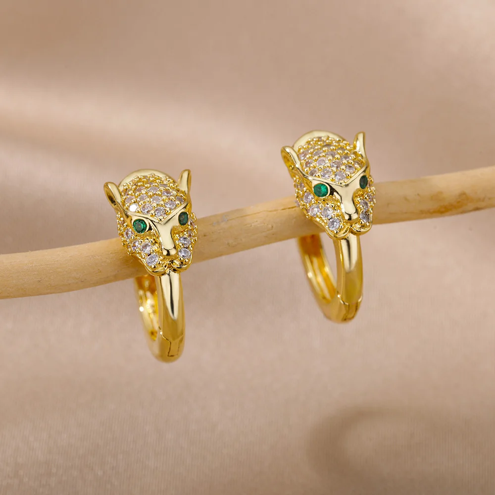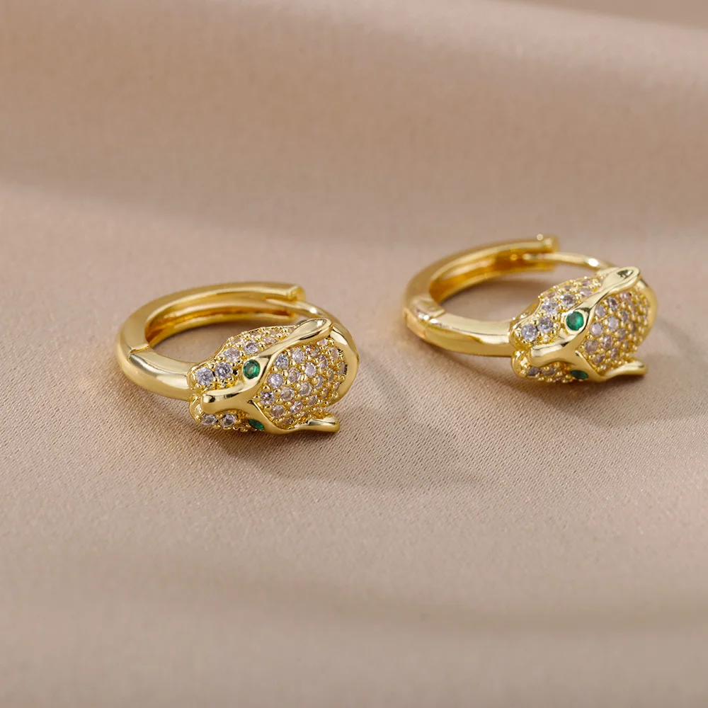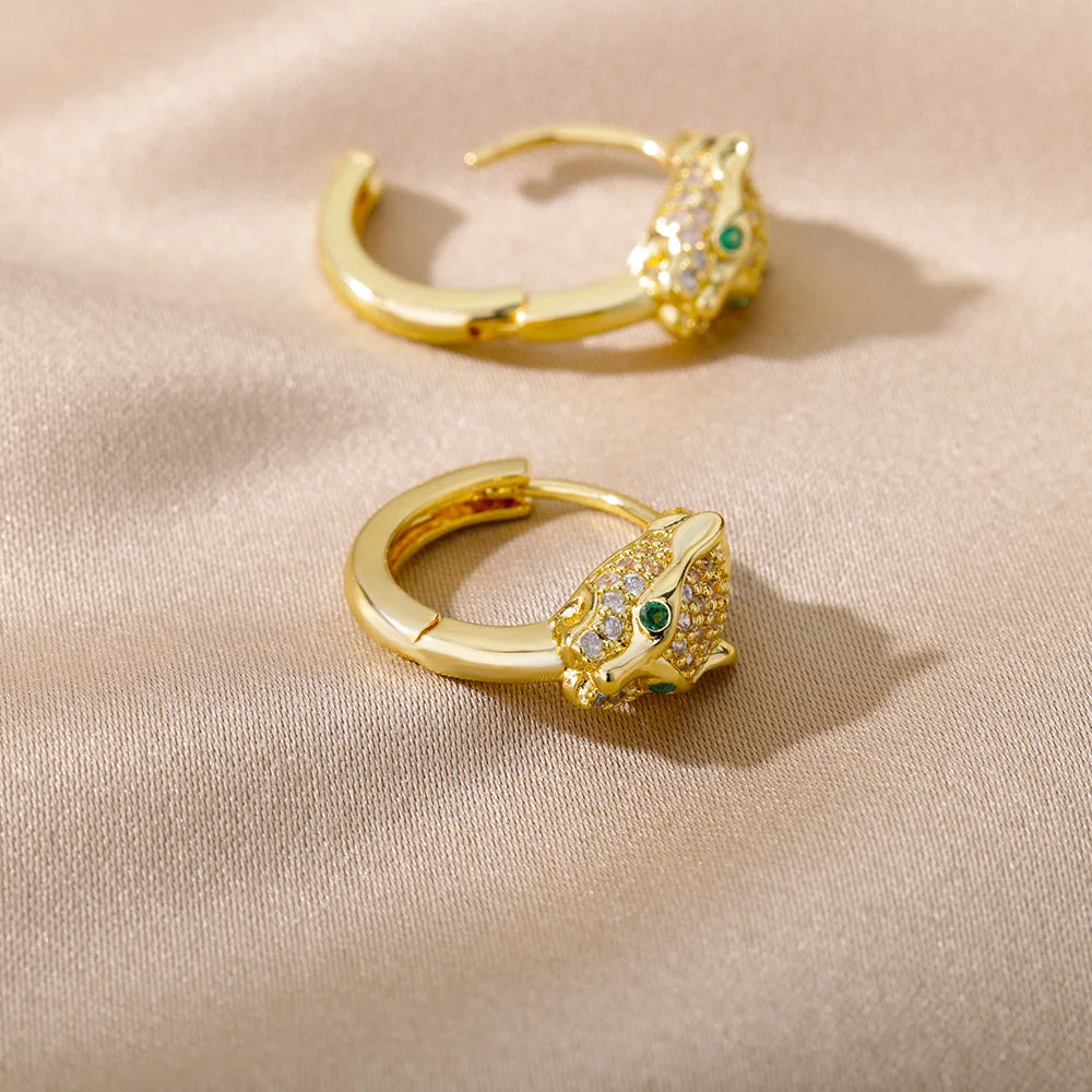 Punk CZ Stone Crystal Panther Hoop Earrings – Statement Jewelry for Women