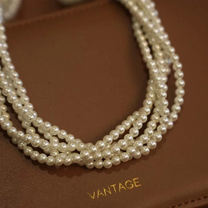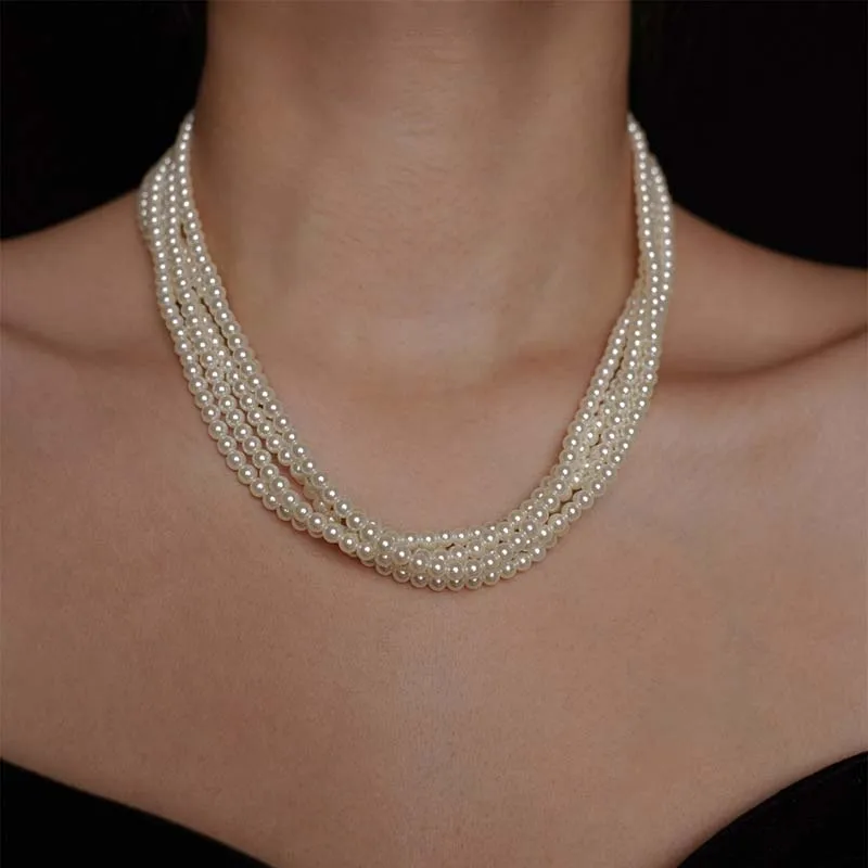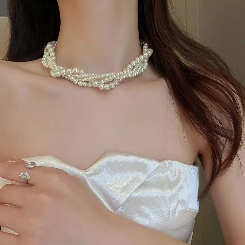 Vintage Multilayer Pearl Choker Necklace - Elegant Twisted Imitation Pearl Chain for Brides