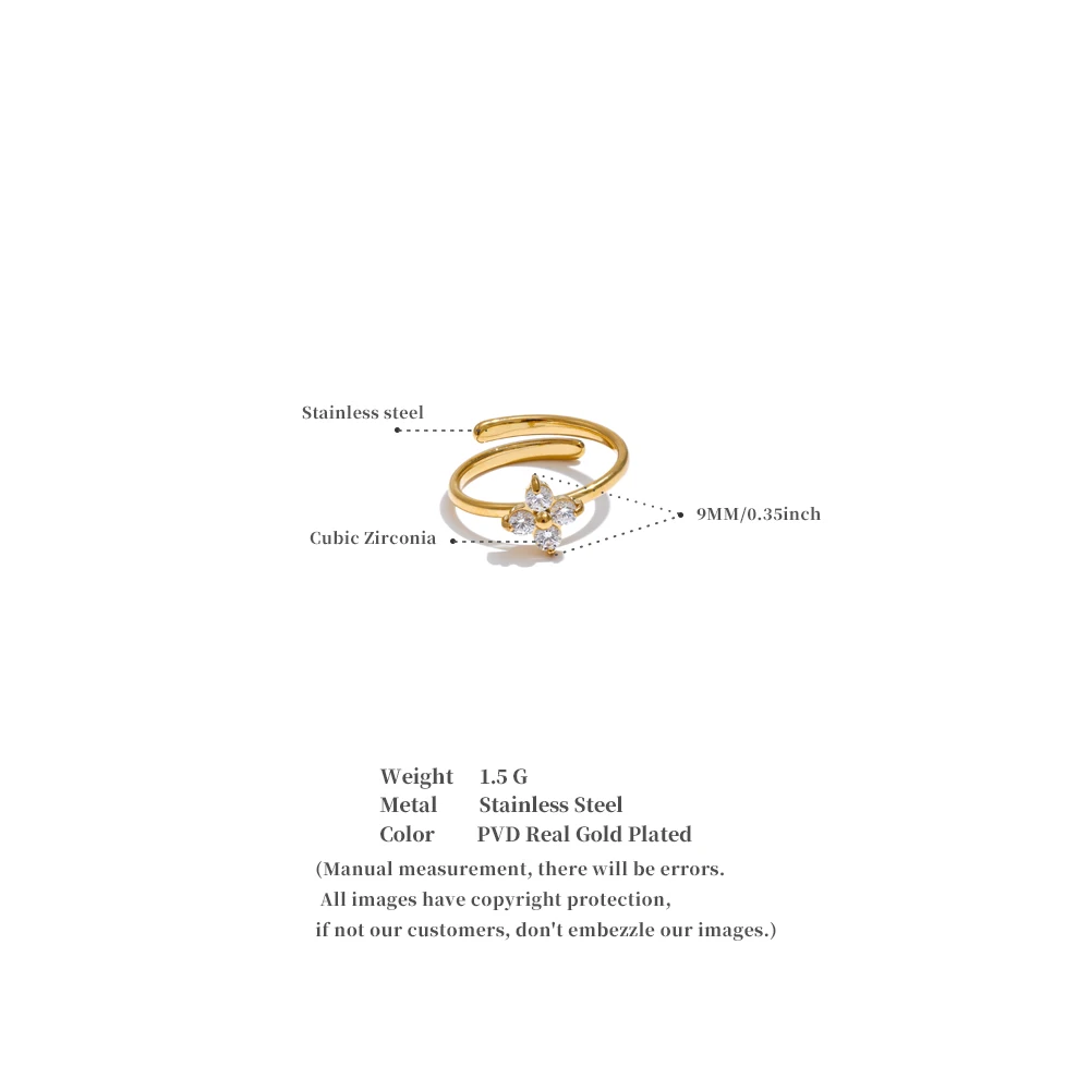 Yhpup Exquisite Stainless Steel Bling Cubic Zirconia Flower Adjustable Ring for Women