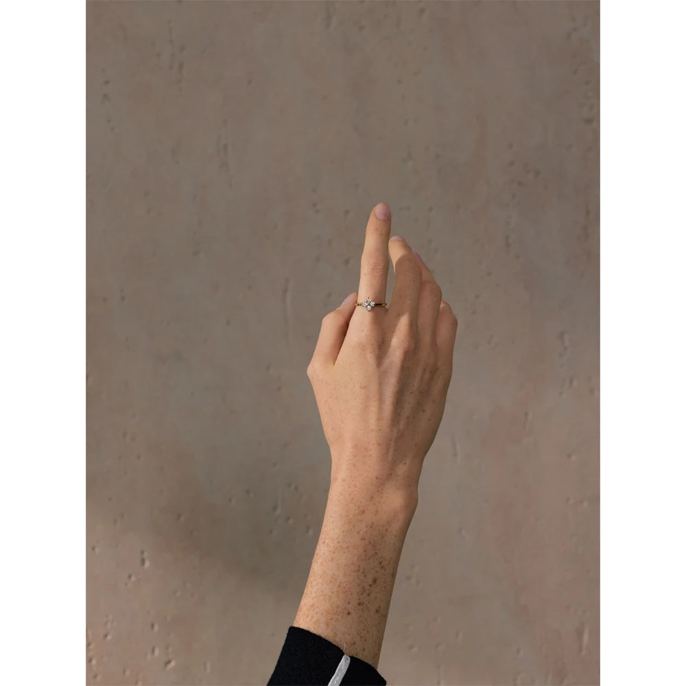 Crafted with precision from high-quality stainless steel, this ring boasts a shimmering finish that catches the light beautifully, making it an eye-catching accessory. The exquisite flower design, adorned with brilliant cubic zirconia stones, adds a touch of sophistication and charm. Each stone is carefully set to create a stunning sparkle that complements any wardrobe.