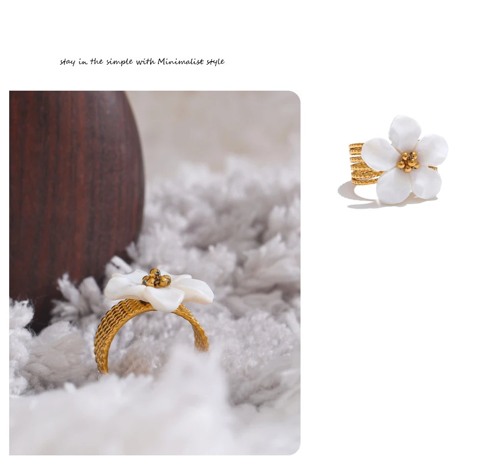 With its captivating flower design, the ring showcases the beauty of natural shell elements that reflect light beautifully, making it a perfect accessory for any occasion. The open design adds an element of charm and sophistication, allowing for a comfortable fit while ensuring that you always look your best. Pair it with casual outfits for a touch of glamour or dress it up with evening wear to stand out effortlessly.