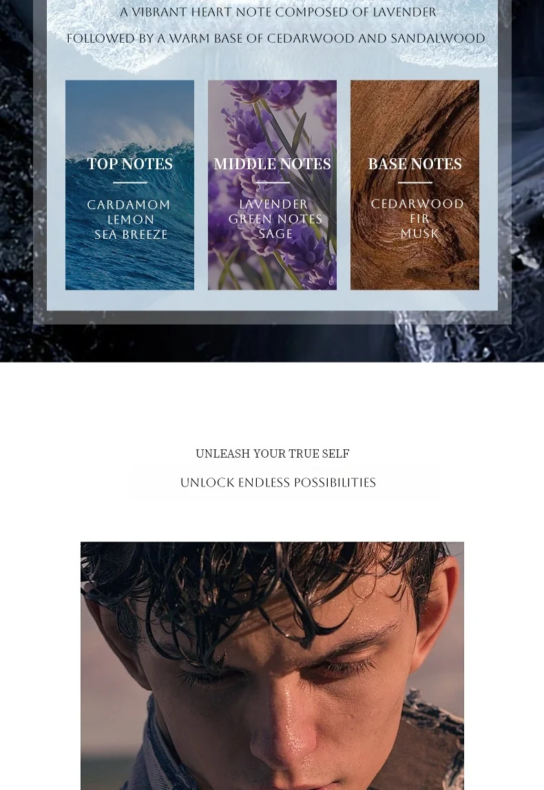 The journey begins with lively top notes of cardamom, lemon, and a refreshing sea breeze, creating an oceanic freshness that energizes your spirit. As the day unfolds, the heart of this fragrance reveals a harmonious blend of lavender, green notes, and sage, echoing a refined masculinity that captures attention. Finally, the lasting warmth of cedarwood, fir, and musk in the base notes envelops you in a comforting embrace, instilling a sense of calm and assurance.