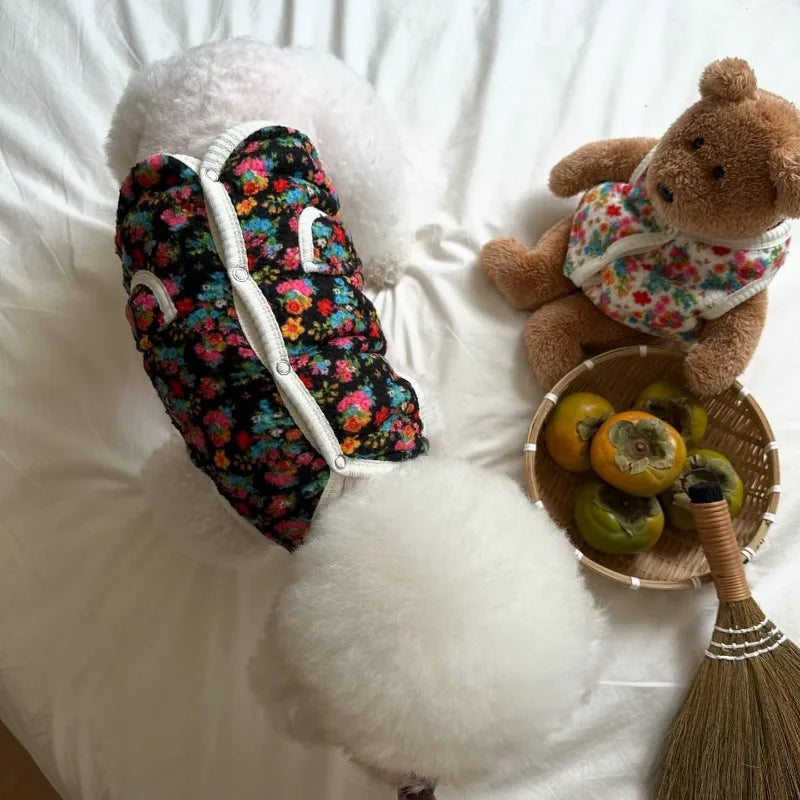 Charming Cotton Pet Dog Clothes - Classic Shabby Flower Coat for Winter