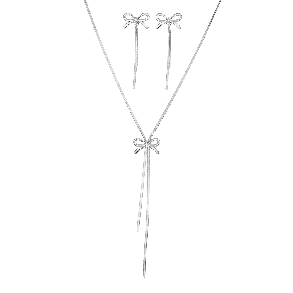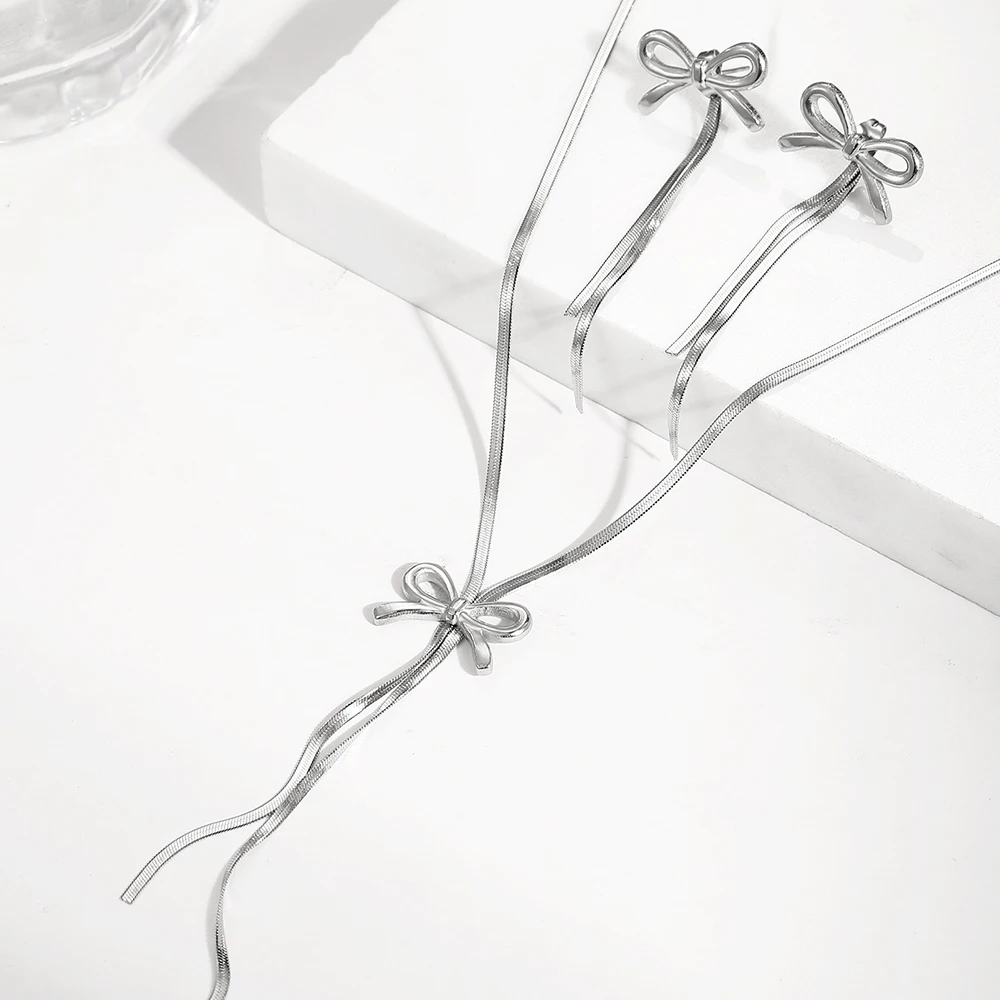 DGIDDK Stainless Steel Necklace - Delicate Bow Tassel Collar Chain for Women