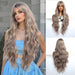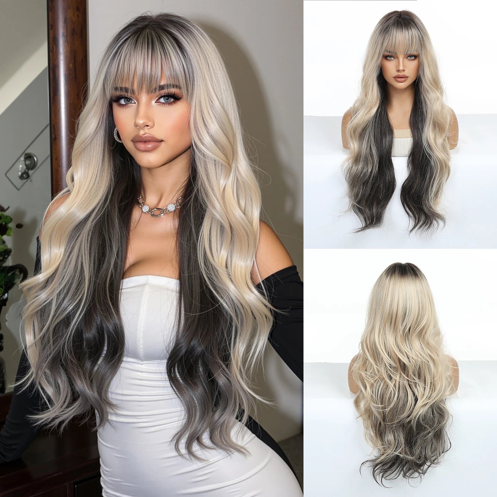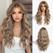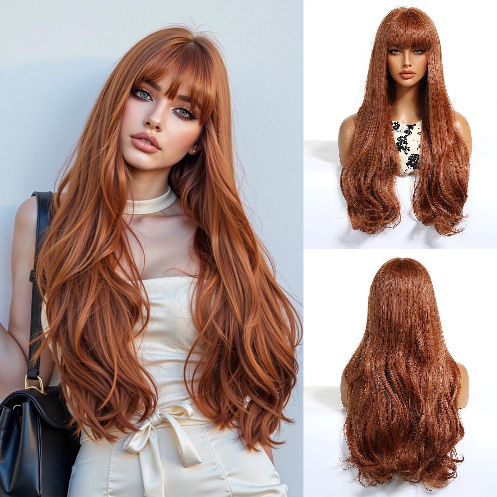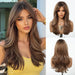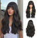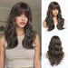 Long Wavy Brown Synthetic Wigs With Bangs for Women