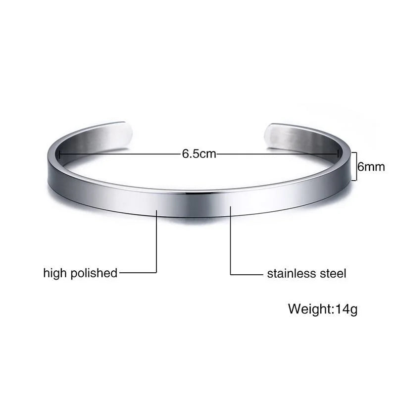 This cuff bracelet is crafted from high-quality stainless steel, ensuring durability and a lasting shine. Its thin design allows for comfortable wear, making it an ideal choice for everyday use. Whether you're looking for a thoughtful gift for Father's Day, a birthday, or just because, this bracelet is an excellent choice for the man who appreciates style. Picture him unwrapping this elegant cuff, a look of delight on his face as he realizes you truly understand his taste.
