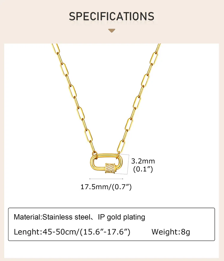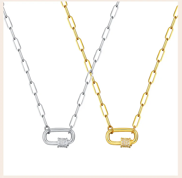 Imagine draping yourself in elegance with our Pave Zircon Pin Pendant Necklace, designed for the modern woman who values both style and sophistication. This exquisite piece effortlessly elevates any outfit, making it perfect for both casual outings and formal events. Its unique design combines the glimmer of zircon with a sleek stainless steel paperclip chain, ensuring that you shine brightly wherever you go.