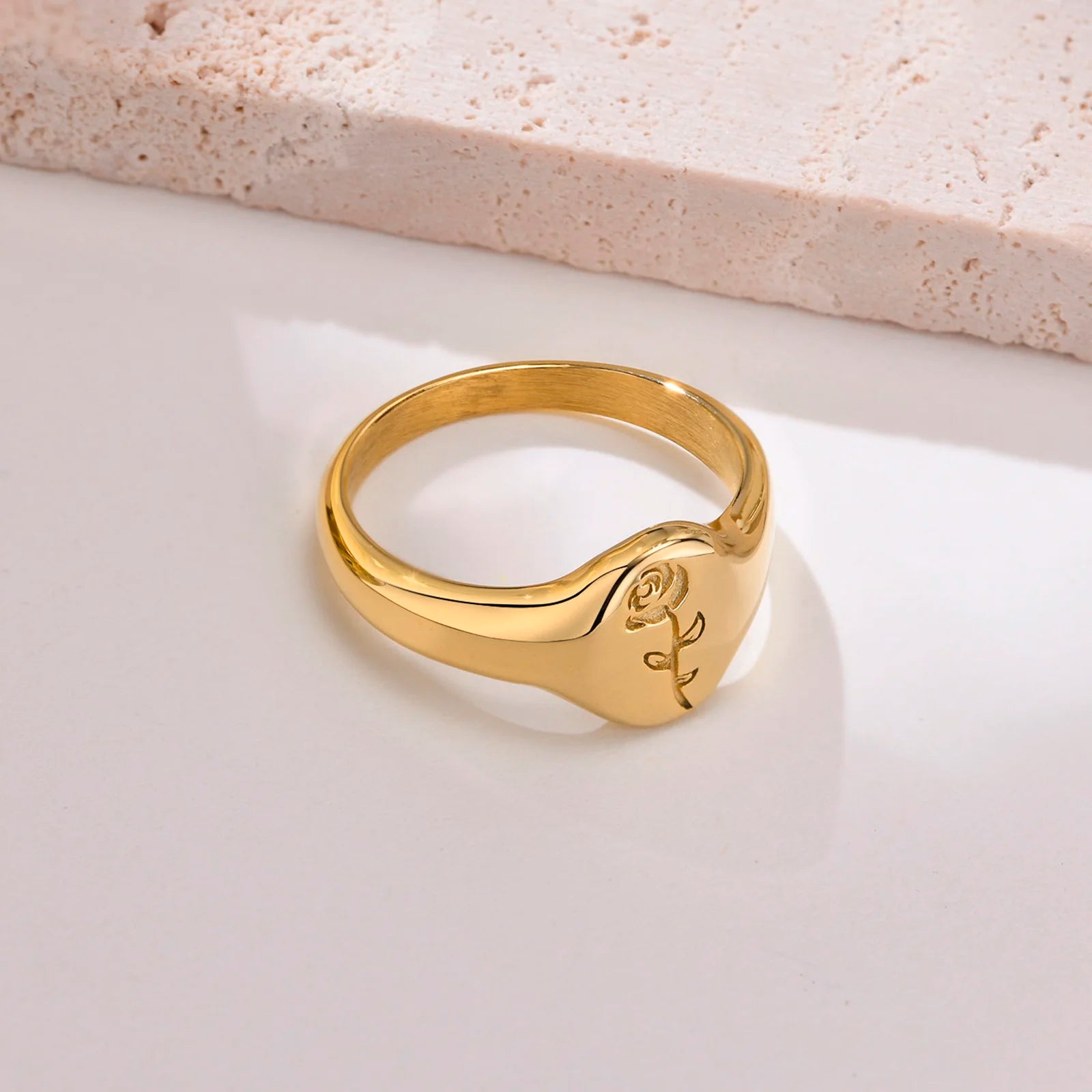 With its timeless design, this ring makes an excellent gift for loved ones or a delightful treat for yourself. No matter the occasion, it serves as a reminder of your aspirations and dreams, shining brightly through every adventure. Create memorable moments and showcase your personal style with our Stainless Steel Floral Signet Ring, a true embodiment of beauty and resilience.