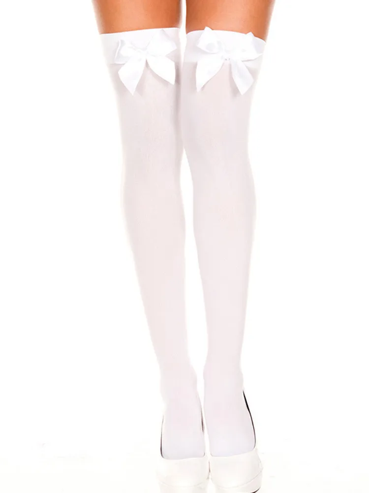 Elegant Women's Pink Bow Stay Up Thigh High Silk Stockings