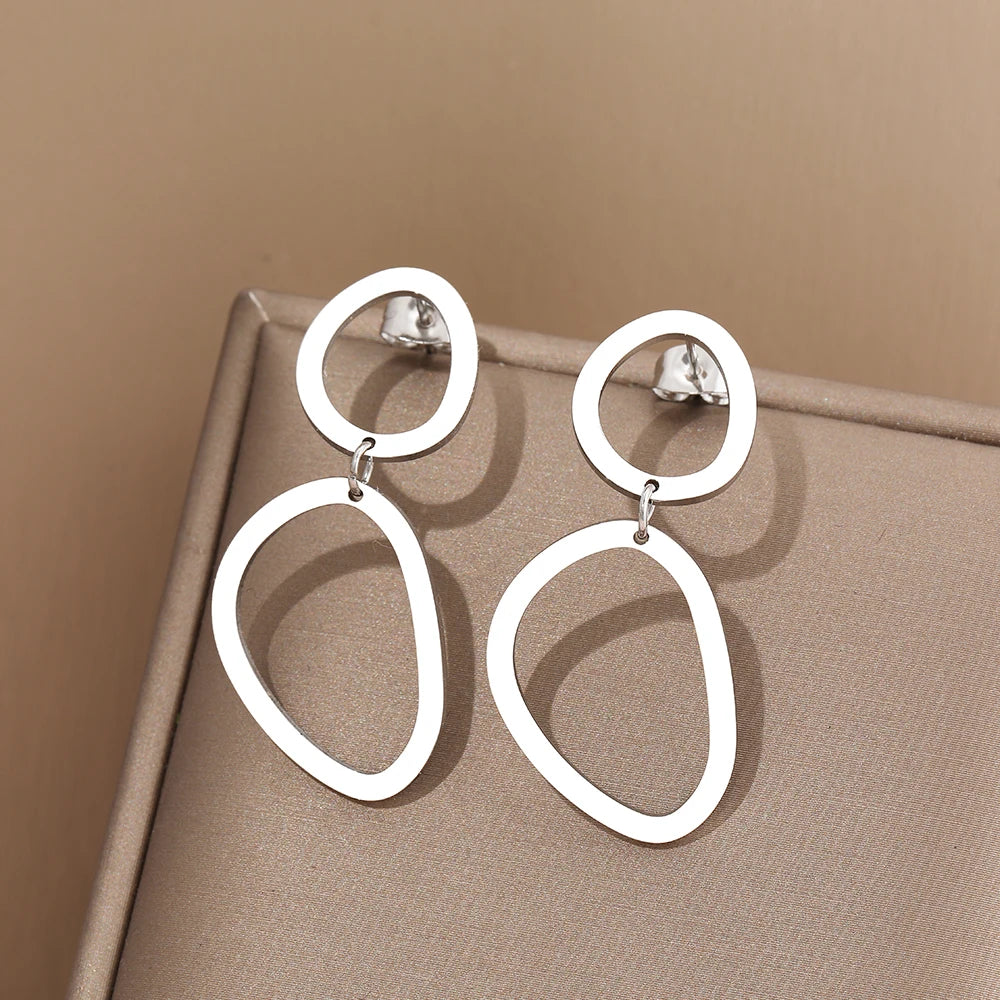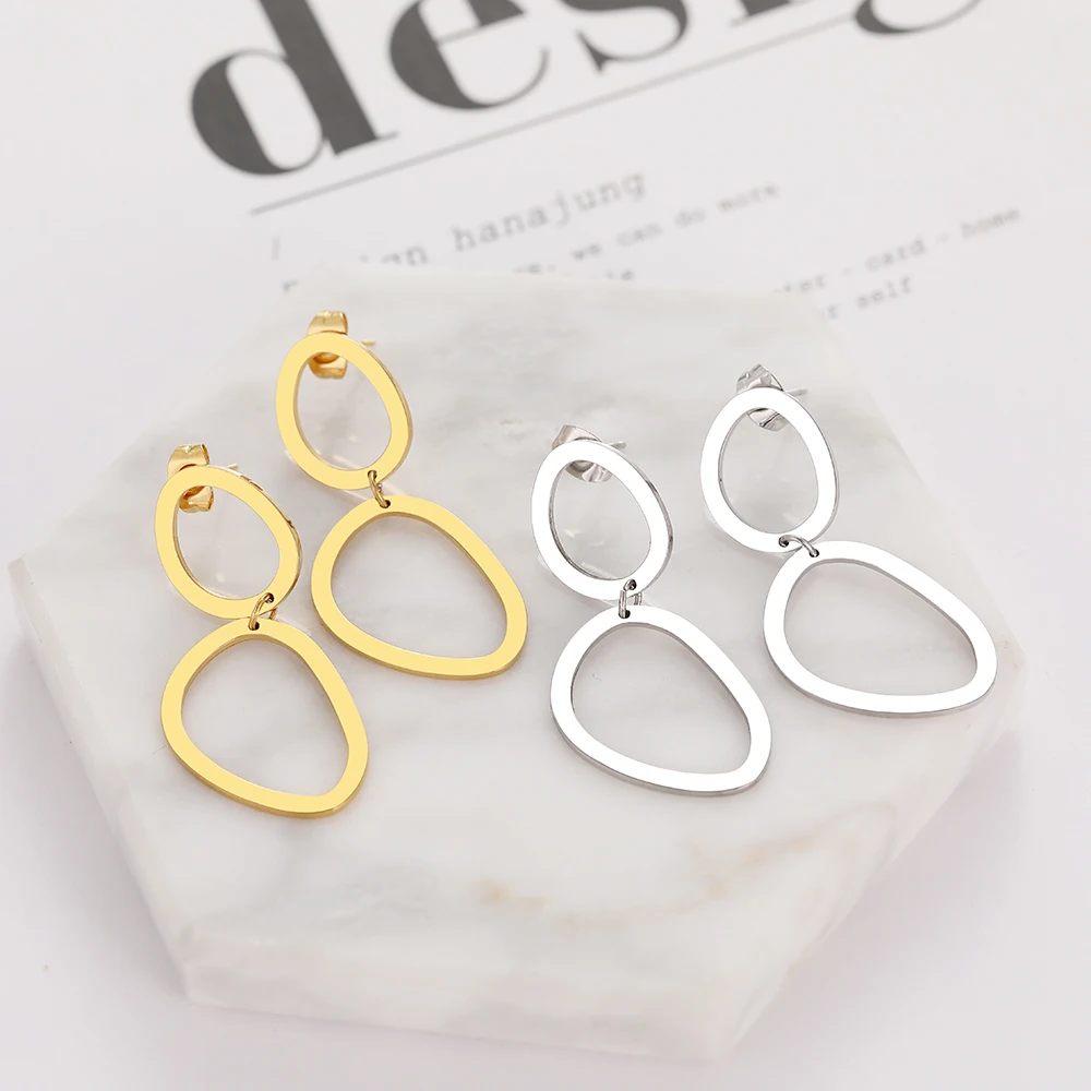 Elevate your style with our stunning Stainless Steel Geometric Irregular Oval Earrings, designed for the modern woman who appreciates both elegance and versatility. Imagine stepping into a lively party, your outfit complete with these eye-catching earrings that effortlessly add a touch of sophistication. Whether you are mingling at a wedding or enjoying a night out with friends, these earrings are bound to turn heads and spark conversations.