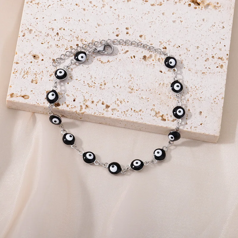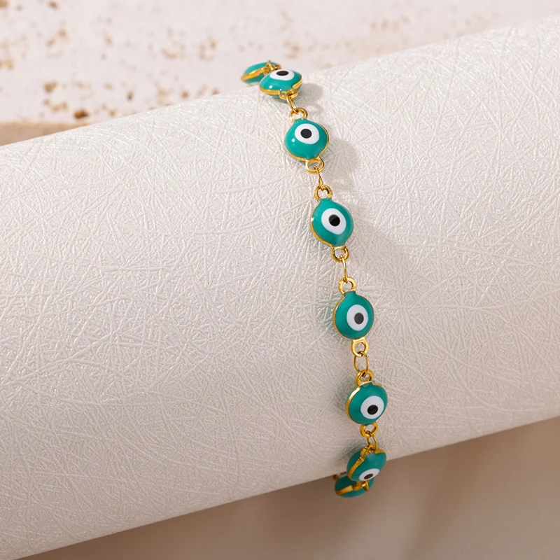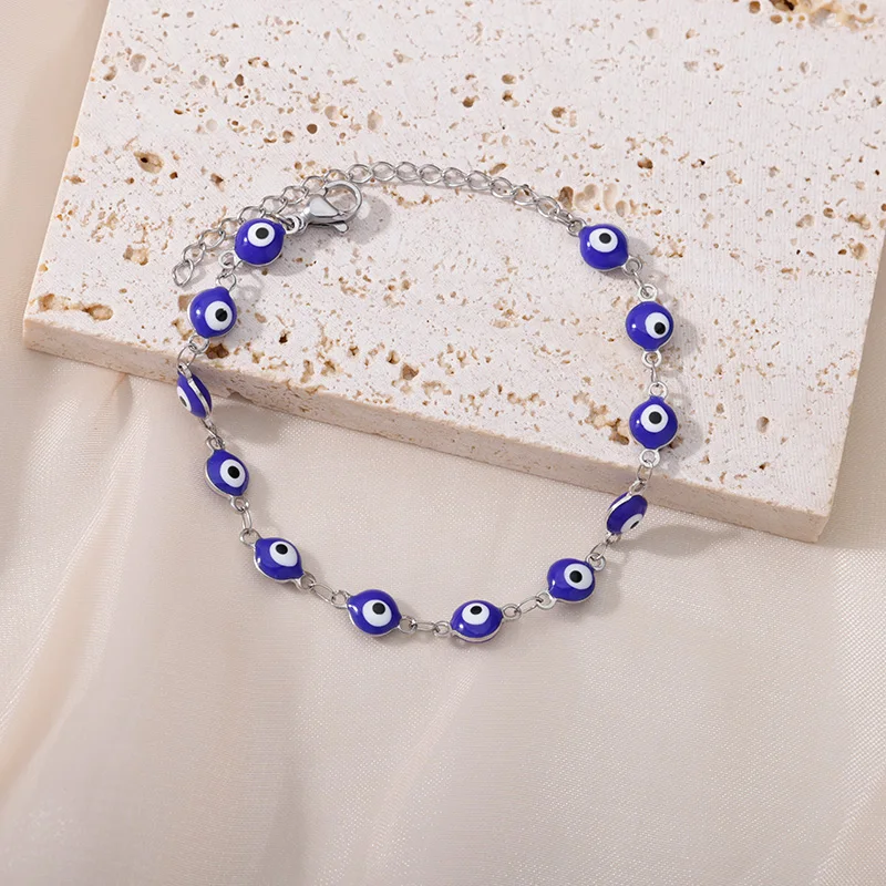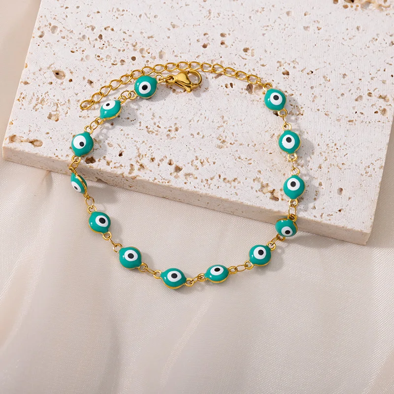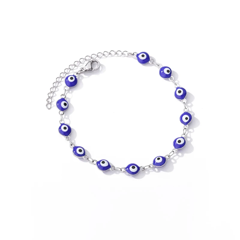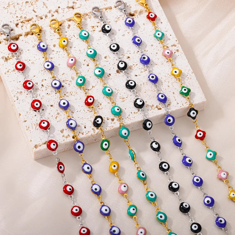 Stainless Steel Evil Eye Bracelet for Women - Enamel Blue Bead Bracelet for Summer Beach Style