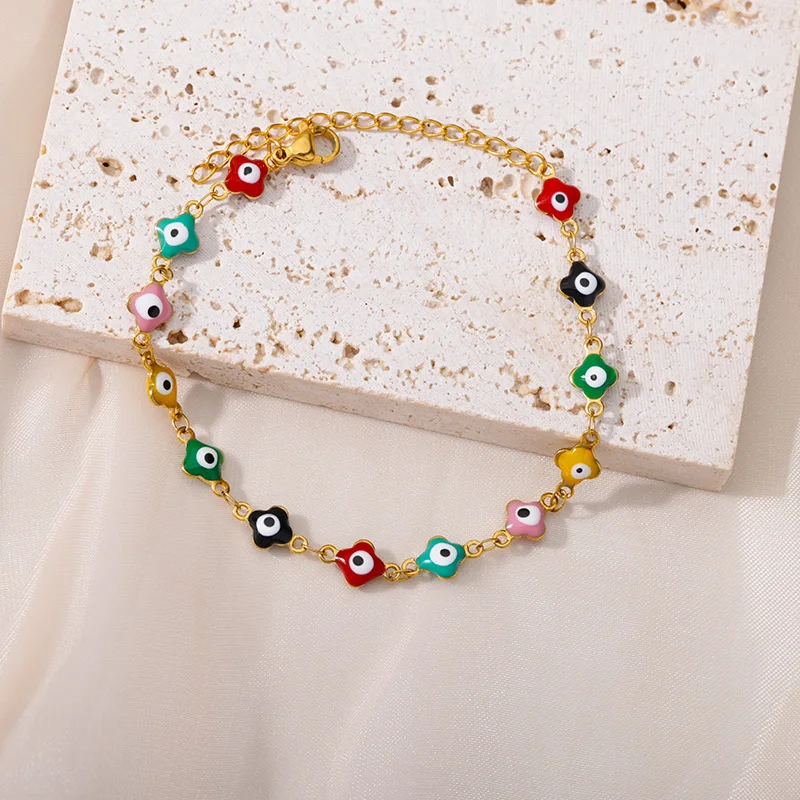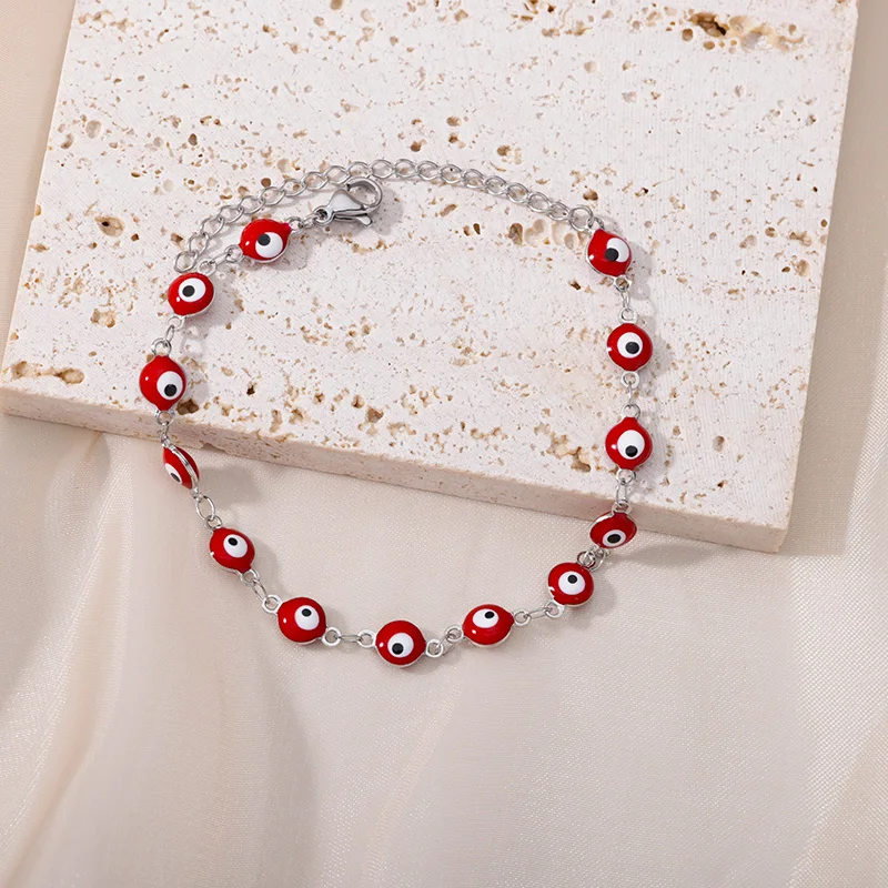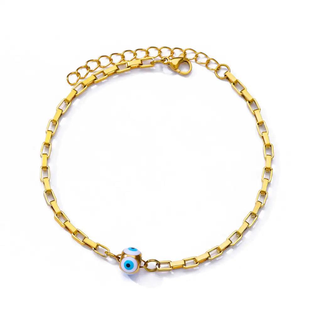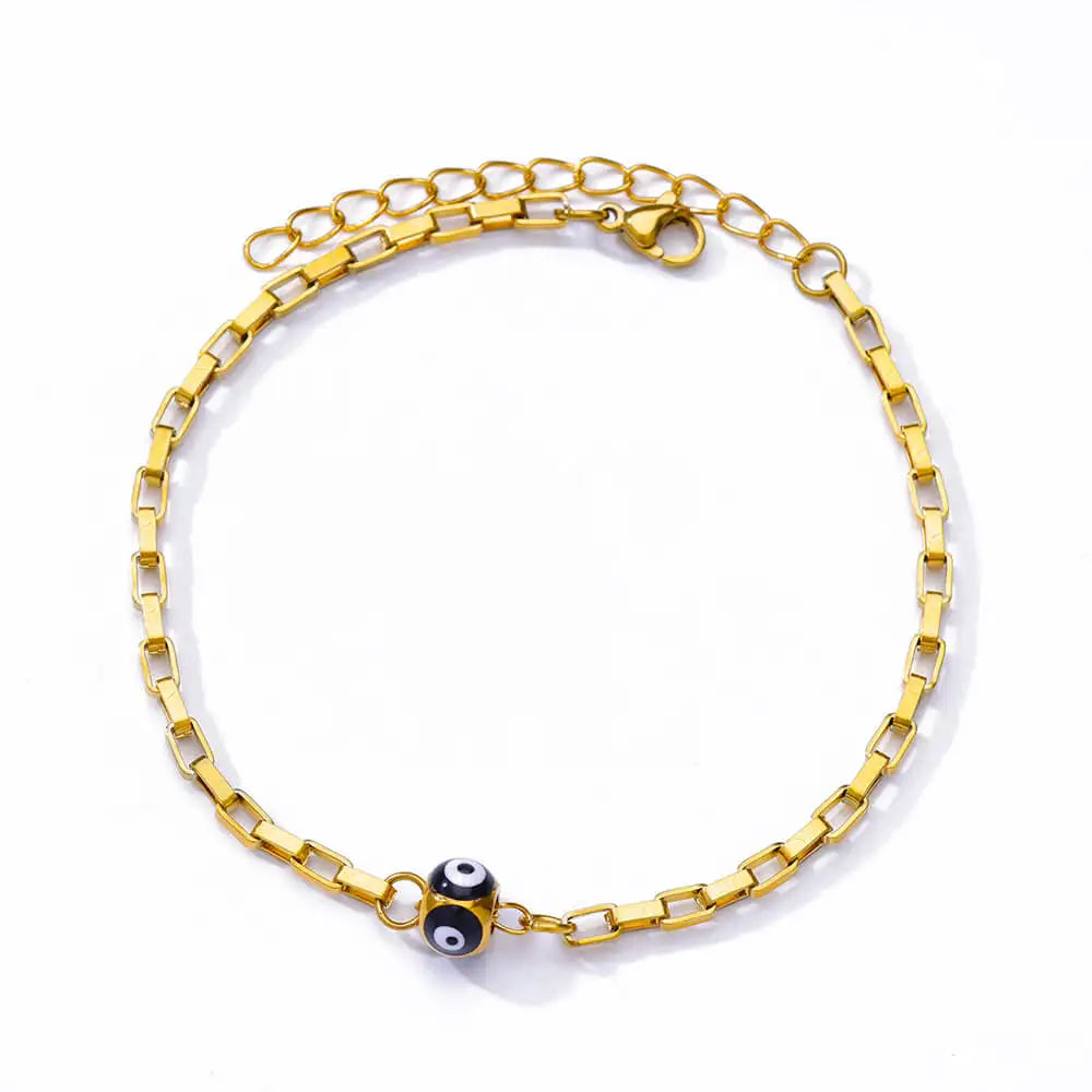 Stainless Steel Evil Eye Bracelet for Women - Enamel Blue Bead Bracelet for Summer Beach Style