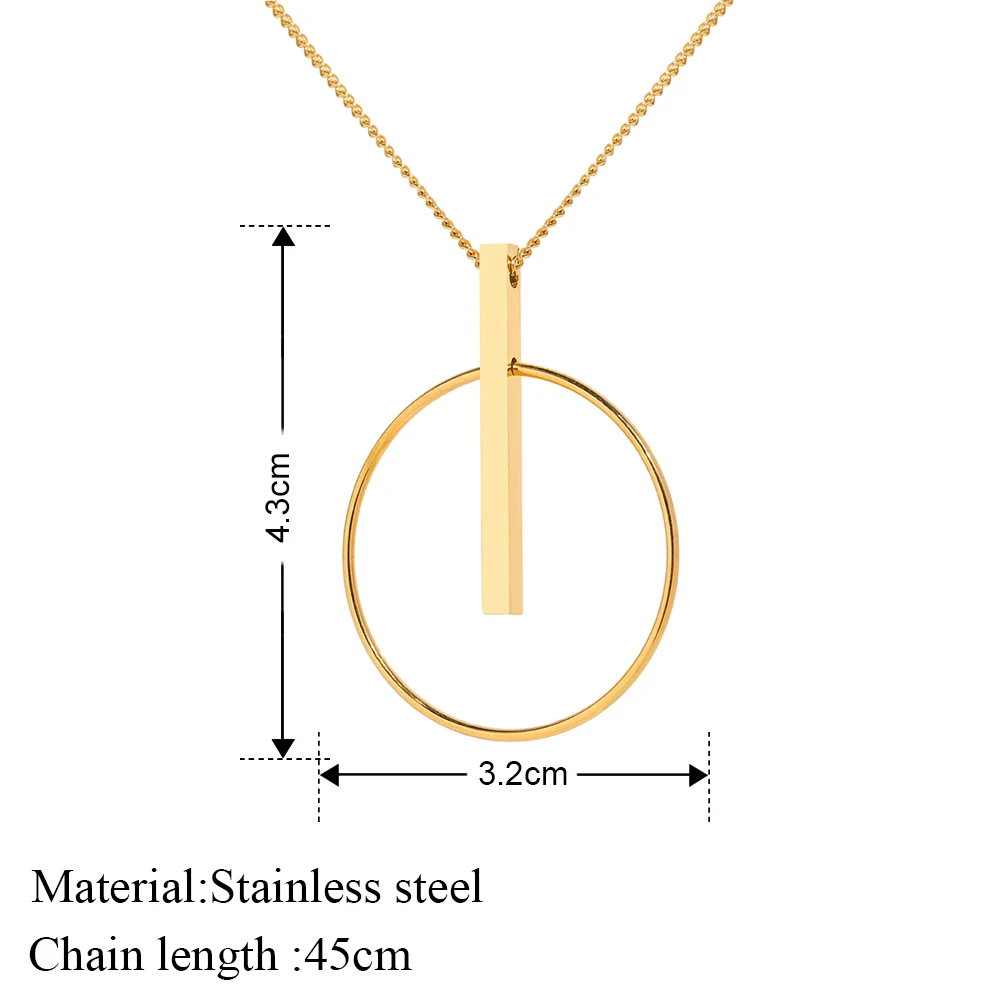 Minimalist Stainless Steel Circle Stick Pendant Necklace for Women