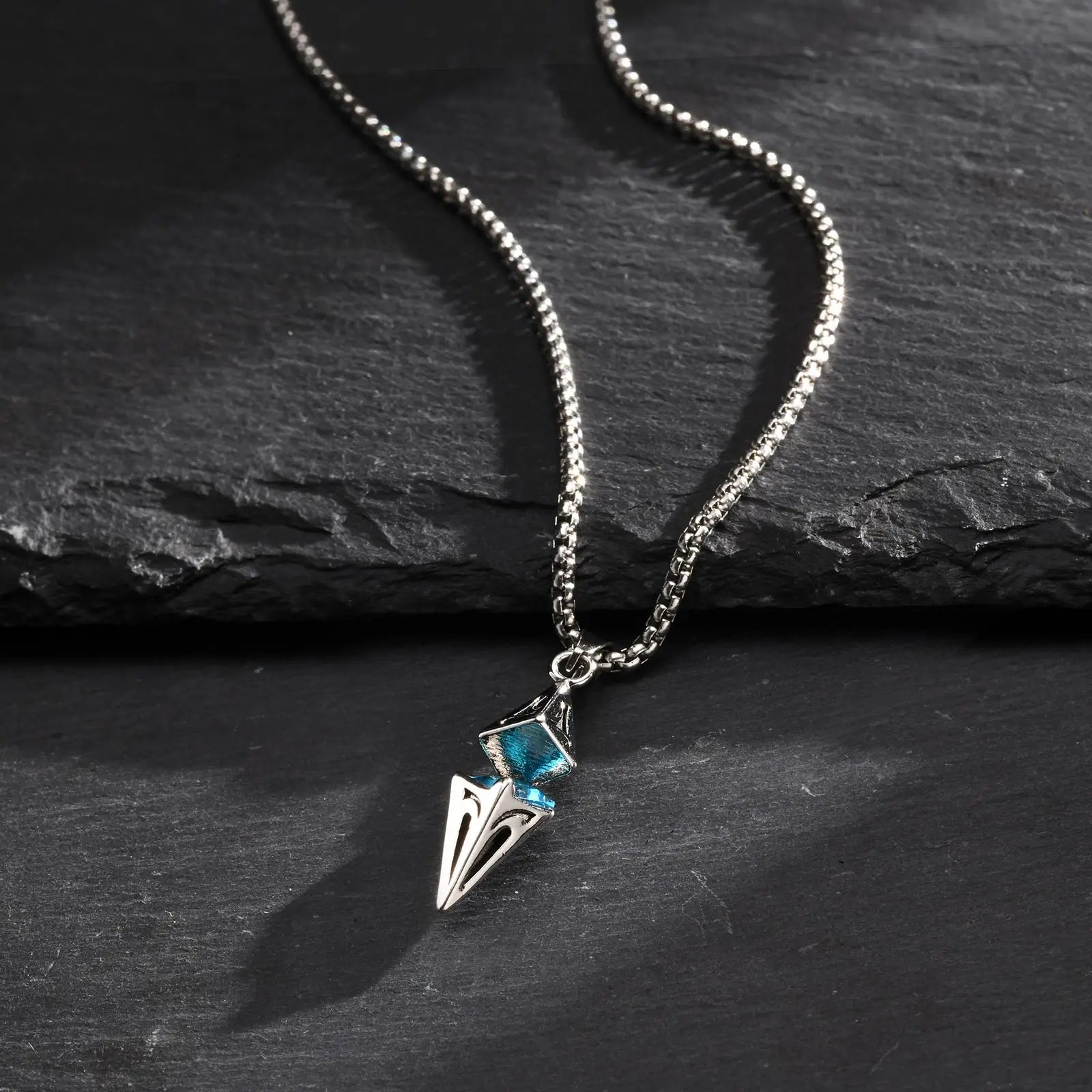 Stylish Blue Stone Necklaces for Men and Women - Stainless Steel Geometric Pendant Collar