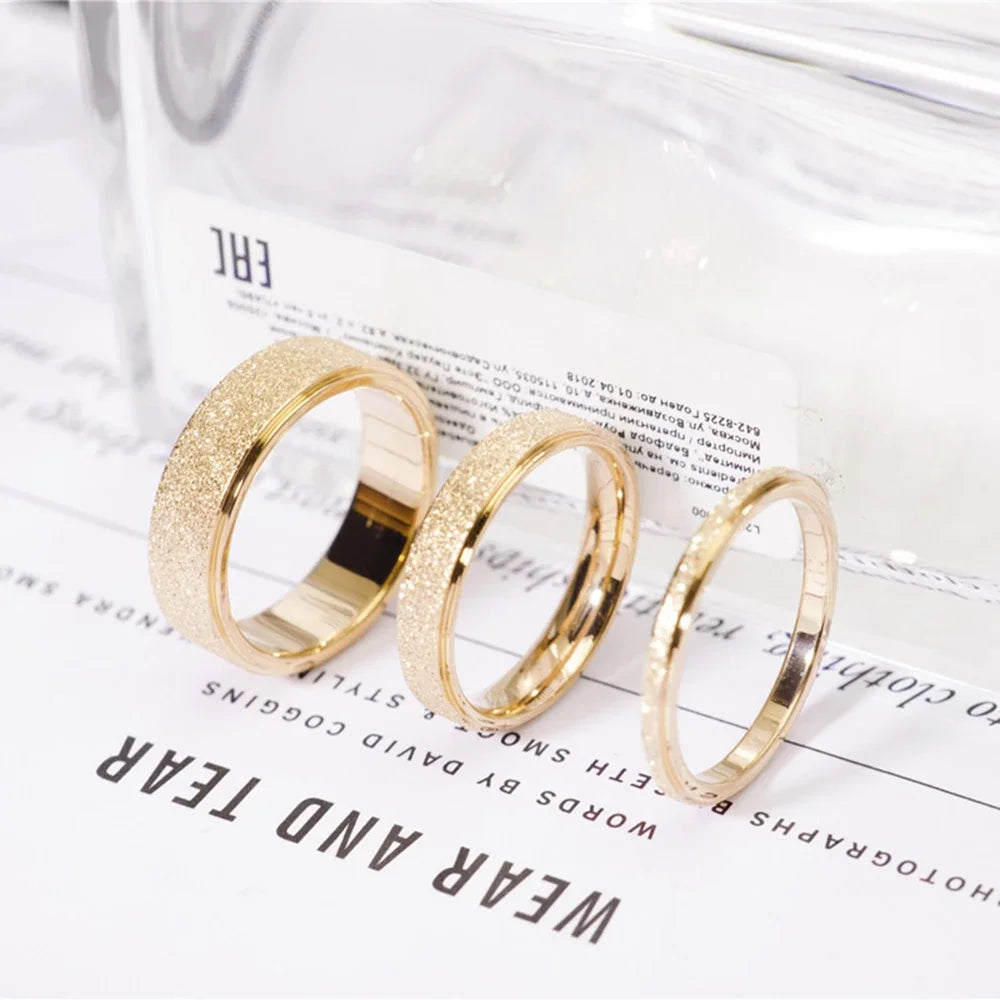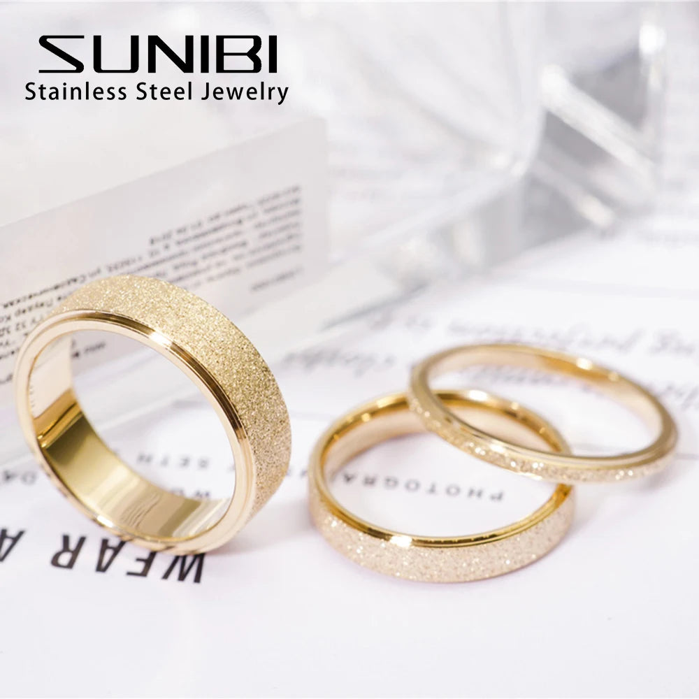 SUNIBI Frosted Stainless Steel Ring for Women – Elegant Gold Finger Ring for Fashion and Weddings