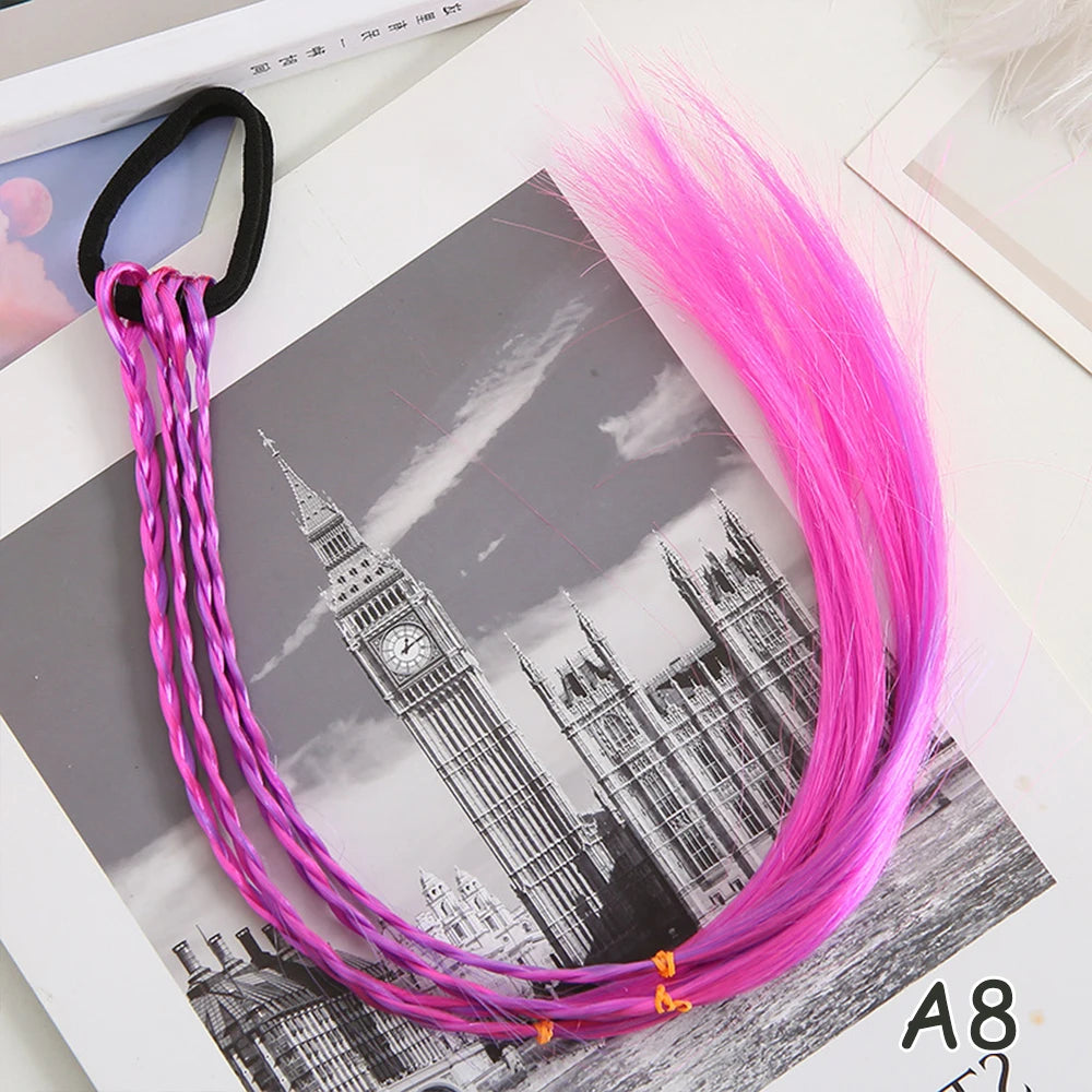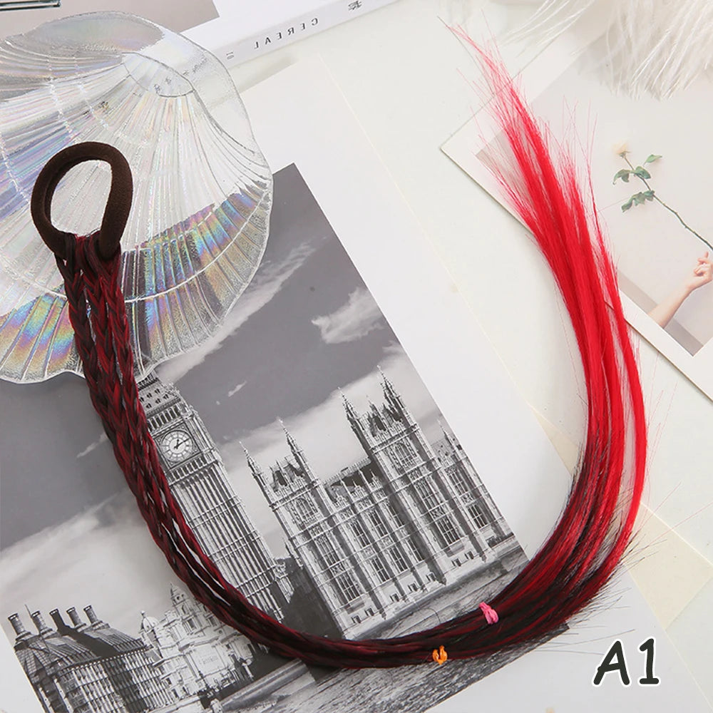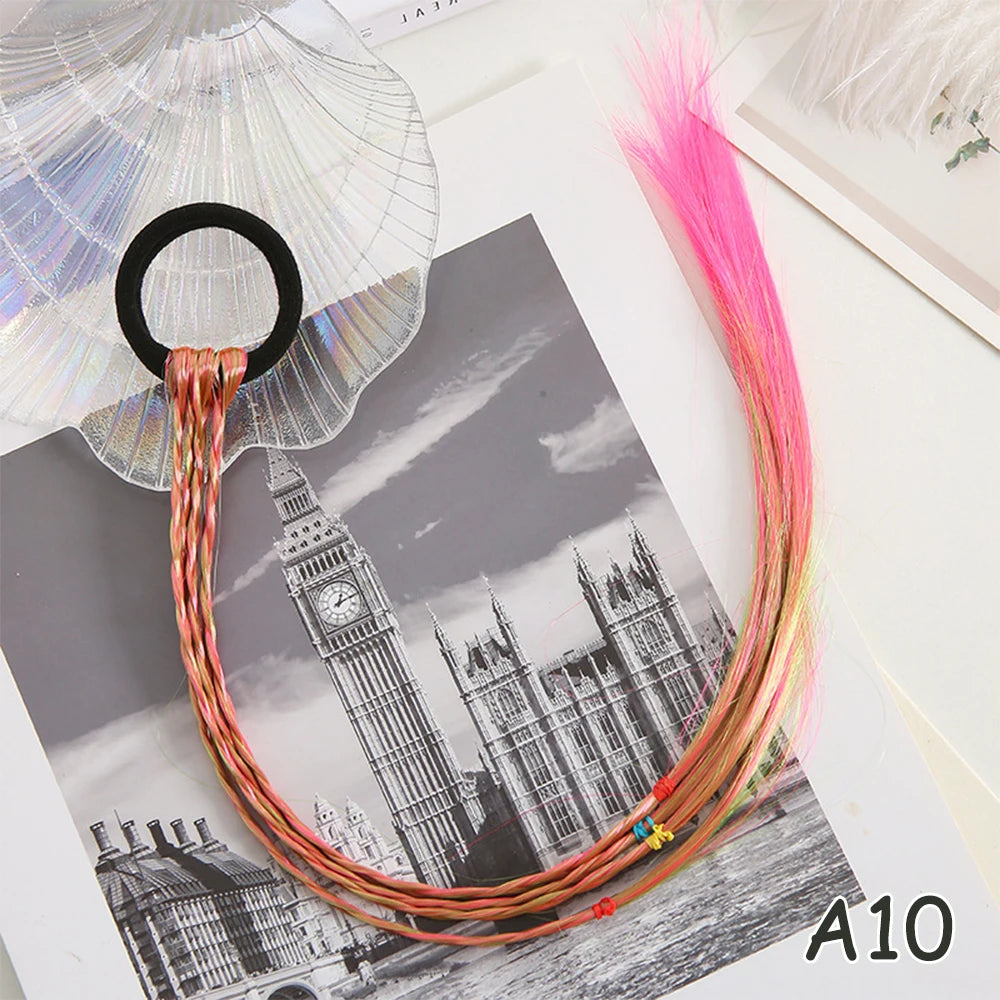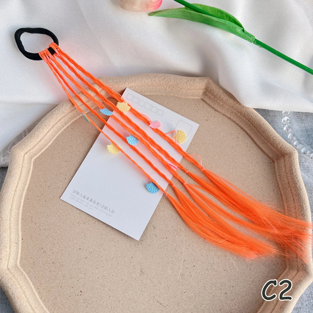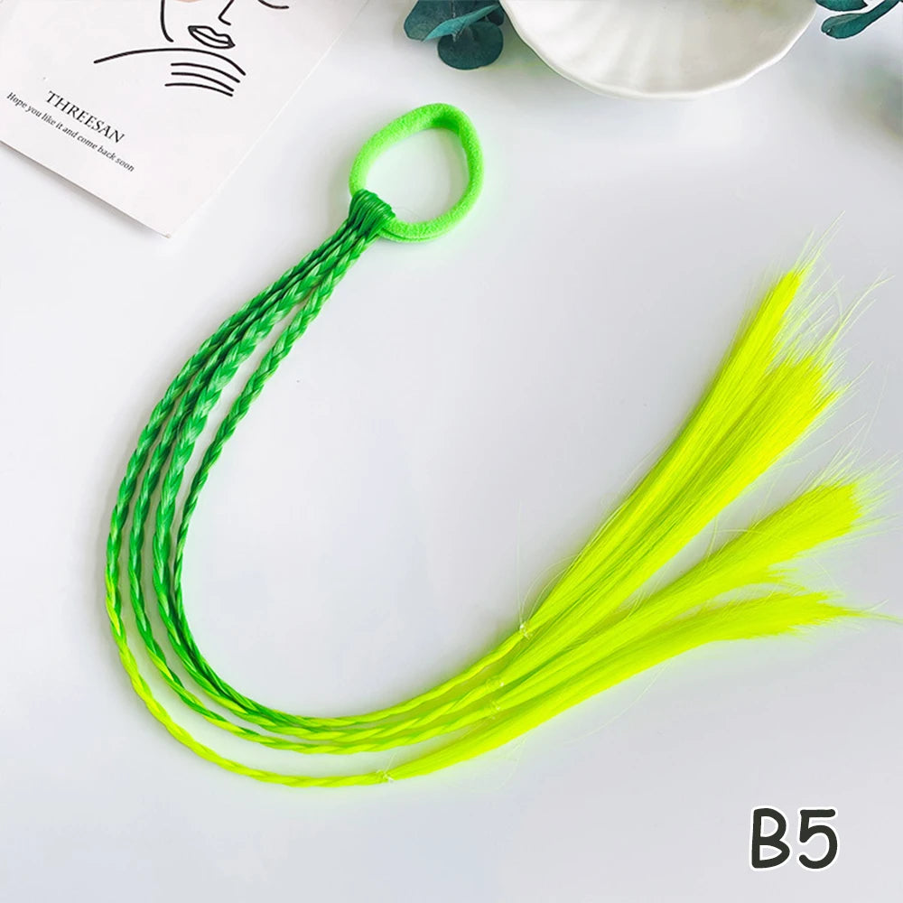 Colorful Synthetic Kids Ponytail Wigs with Headbands and Rubber Bands