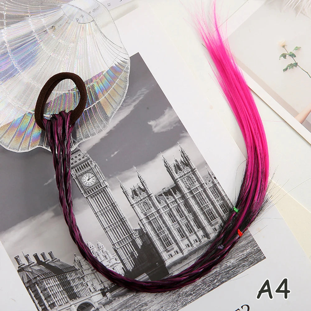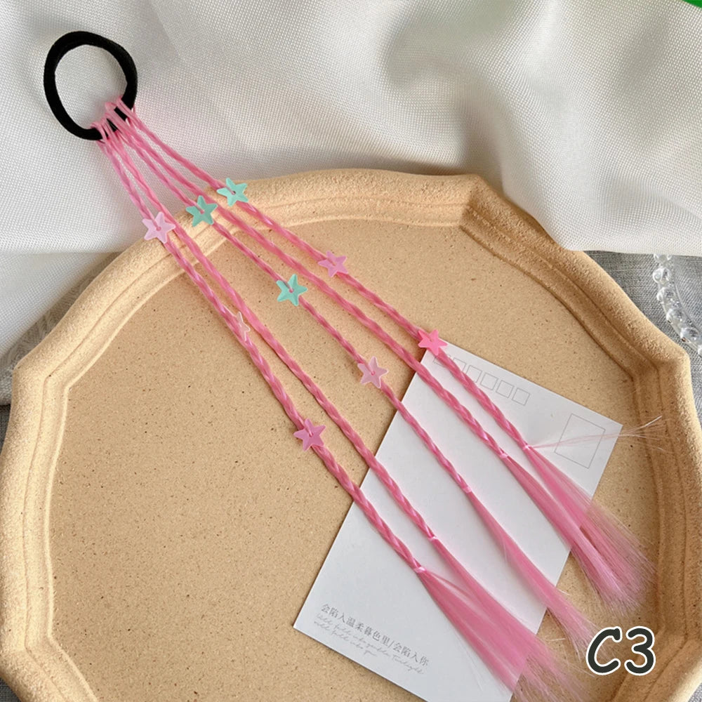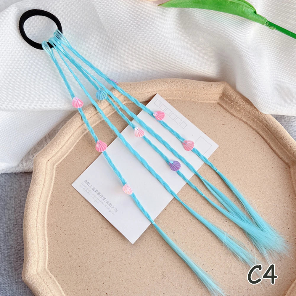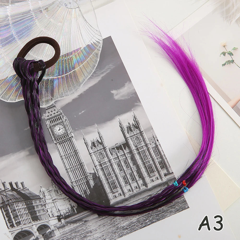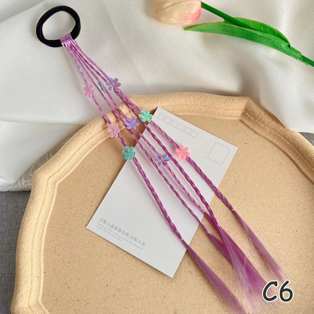 Colorful Synthetic Kids Ponytail Wigs with Headbands and Rubber Bands