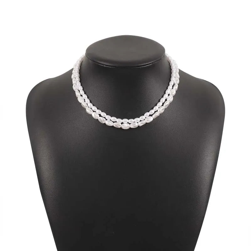 Vintage White Imitation Pearl Beads Choker Necklace for Women - Elegant Double Layer Elastic Short Chain Wedding Jewelry