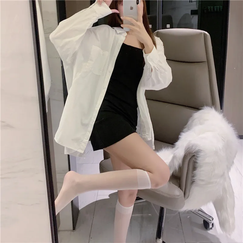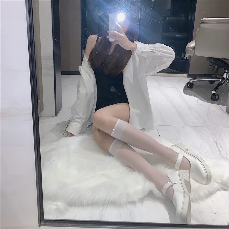 White/Black Calf Stockings Nylon Mid-tube Socks for a Chic Spring Look