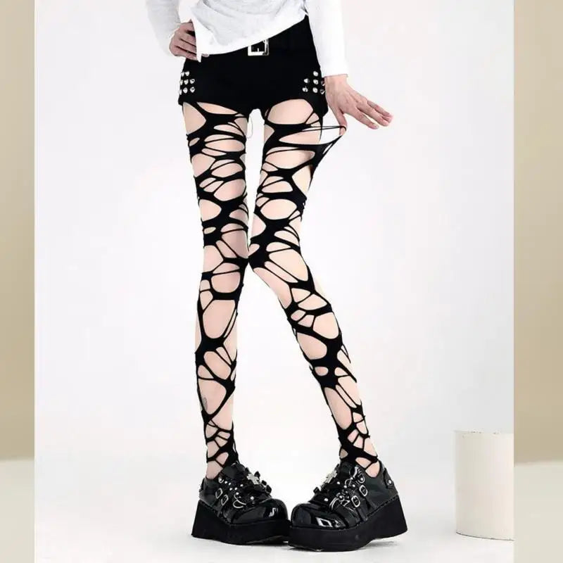Y2K Punk Women’s Torn Strap Gothic Thigh Knee Socks
