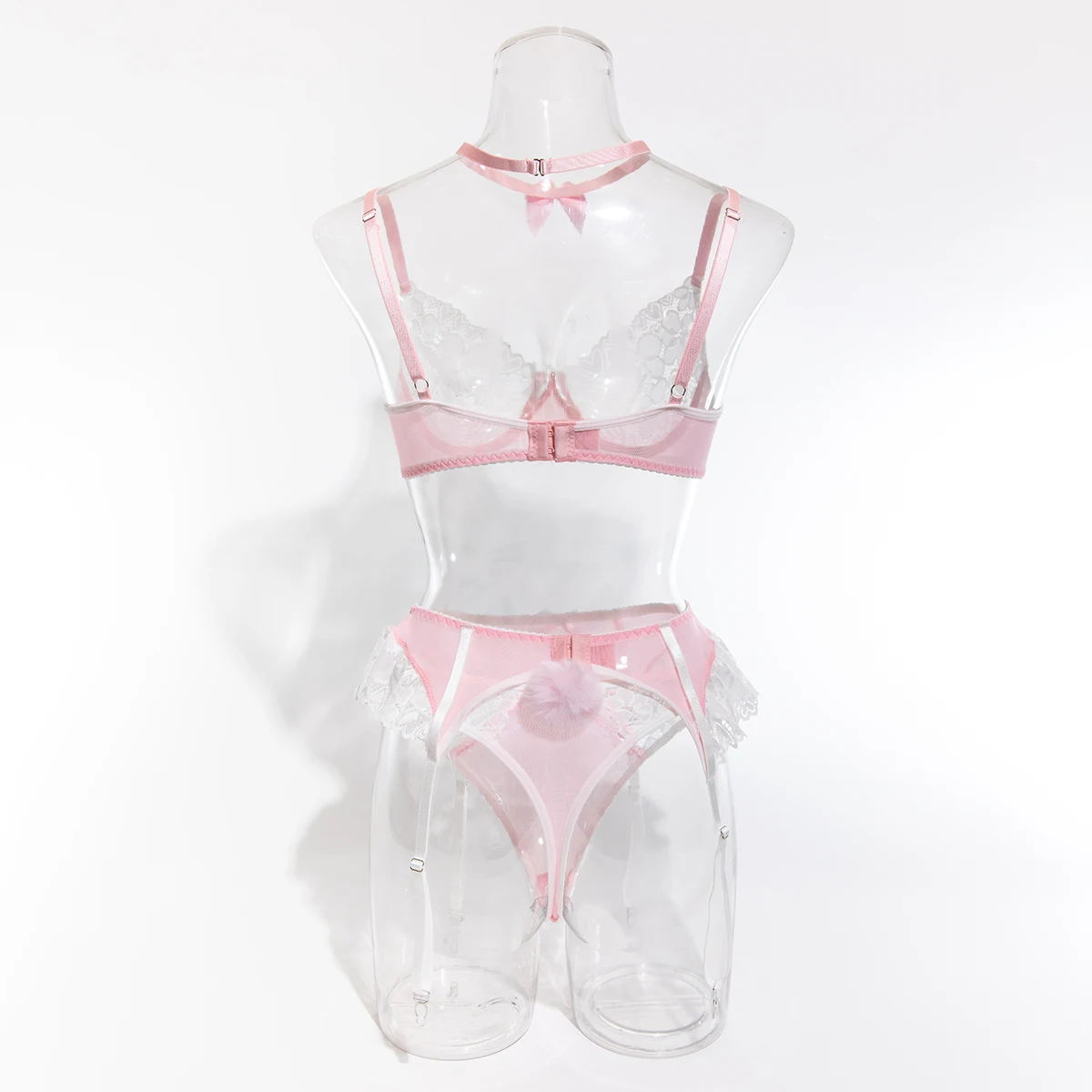 5-Piece Lace Lingerie Set with Choker Bra, Brief Underwear, and Garter Kit