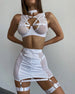 The set includes a seductive choker that perfectly complements the intricate lace detailing, adding a touch of elegance to your look. Picture yourself draped in this luxurious fabric, radiating confidence and charm. Whether it's for a romantic night in or an intimate evening out, this lingerie set promises to elevate your experience.