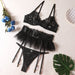 Lace Bra Set Women Transparent Mesh Patchwork Sexy Lingerie Set Floral Garter Brief Underwear Set