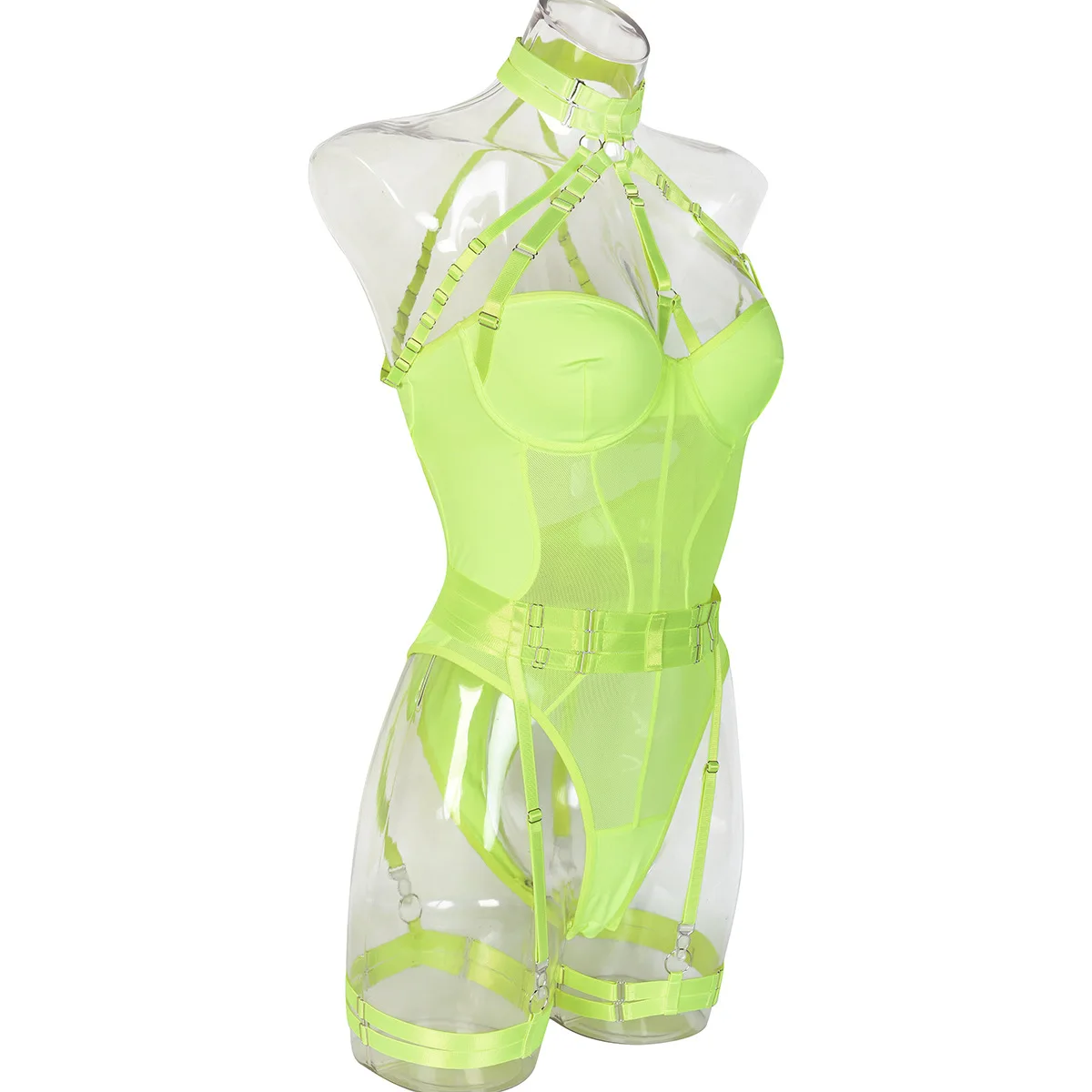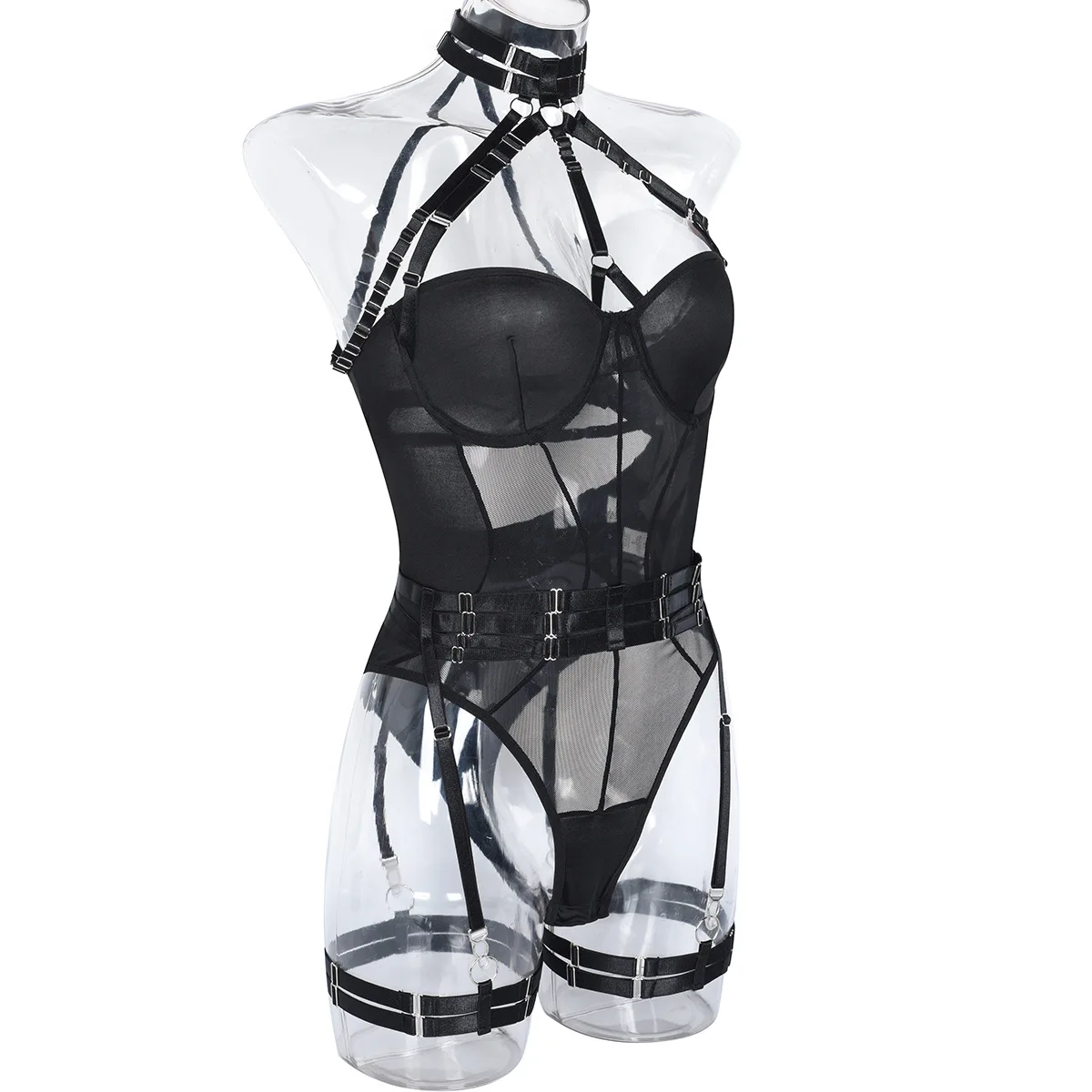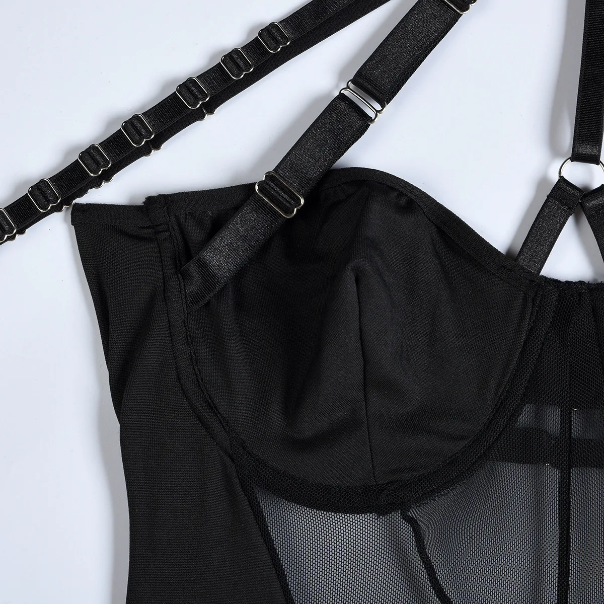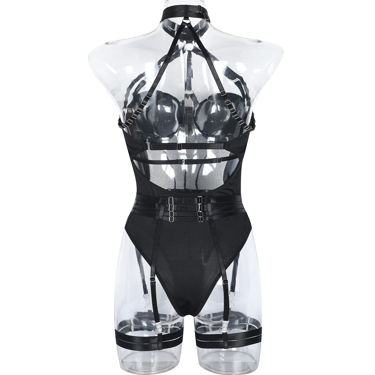 Mesh Bodysuit Women Gothic Backless Bandage Sexy Body Femme Halter Bandage Black Bodysuit Clubwear